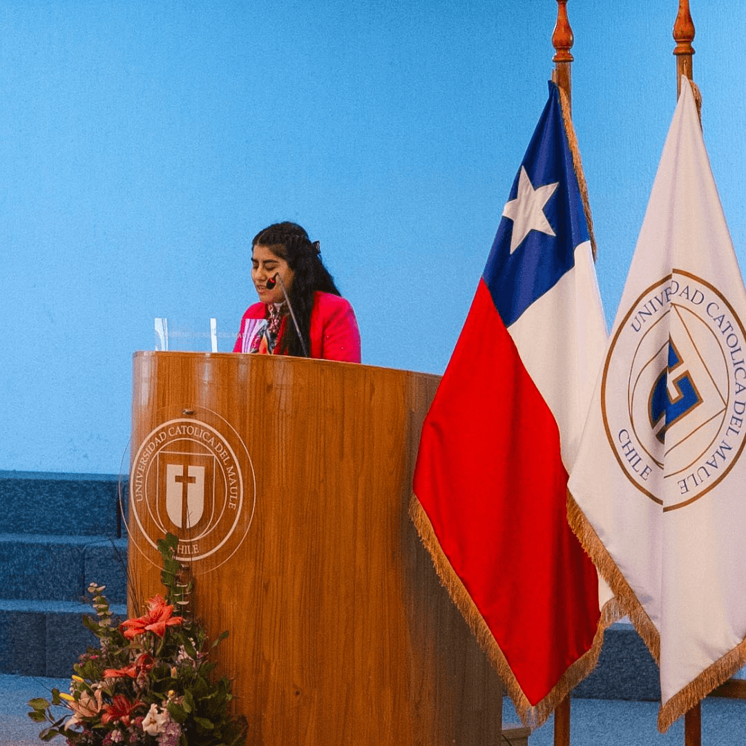 Catherine Agüero Tobar, fue parte de la primera generación que pasó por el Programa de Atracción de Talentos en Pedagogía (PAT) UCM, hoy es profesora de Lengua y Literatura del Liceo Bicentenario de Excelencia Santa Marta de Talca y magíster en Didáctica de la Lengua Castellana y la Literatura de la Universidad Católica del Maule.