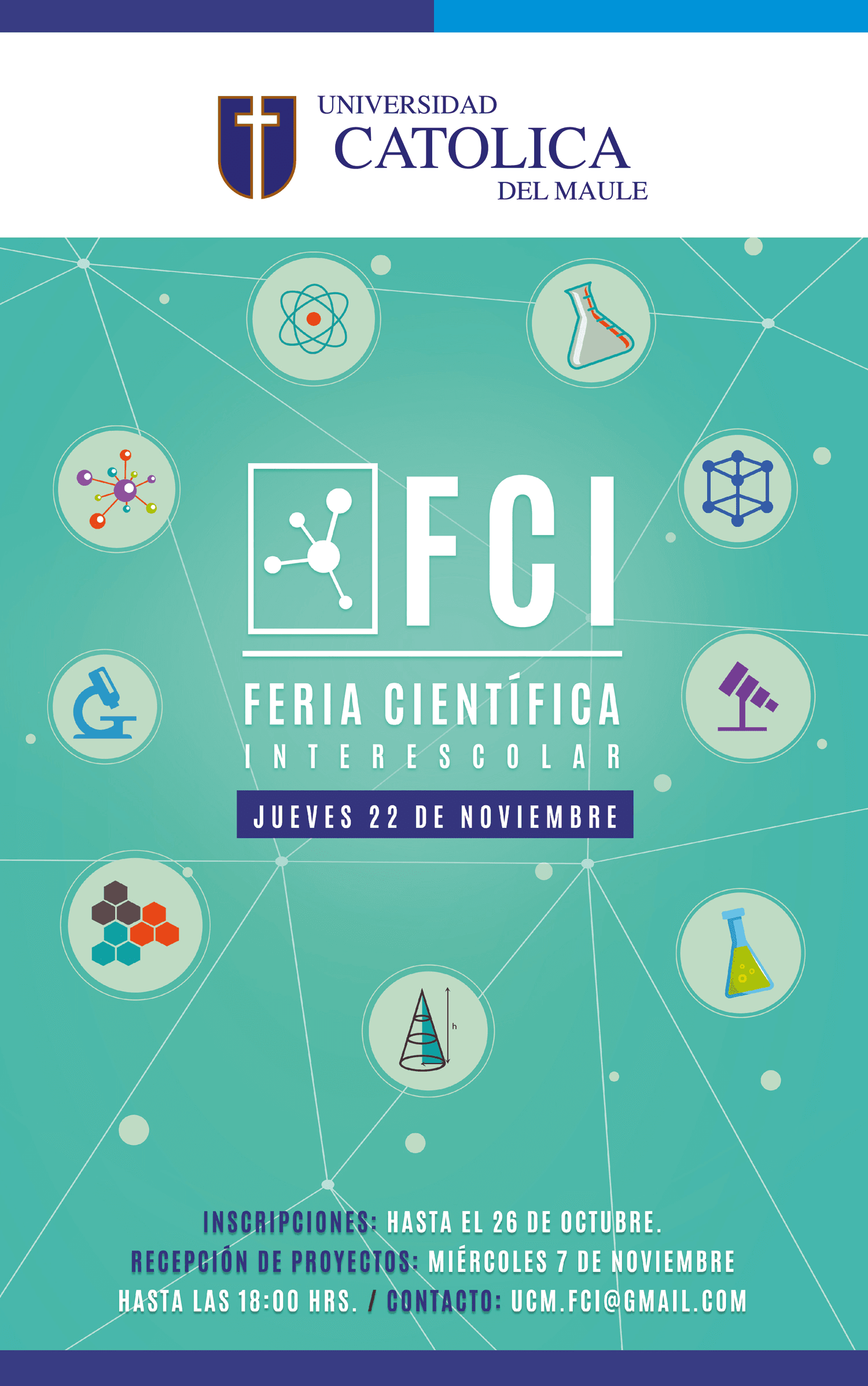 El jueves 22 de noviembre se desarrollará la primera Feria Científica de la Universidad Católica del Maule, espacio que se llevará a cabo en las instalaciones del Campus San Miguel en Talca -Avenida San Miguel 3605- y que convoca a todos los equipos o grupos científicos de alumnos que cursan entre 7mo y 4to medio de establecimientos educativos del Maule.