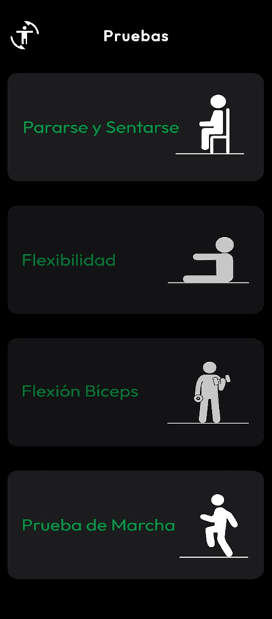 La app está pensada para individuos de 60 a 85 años y dispone de pruebas que miden fuerza, flexibilidad, flexión y equilibrio.