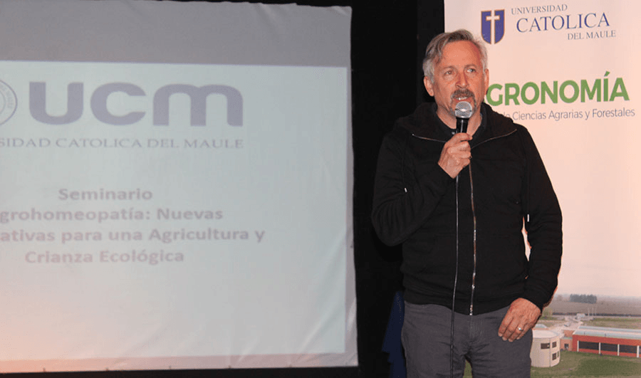 En el seminario “Agrohomeopatía: Nuevas Alternativas para una Agricultura y Crianza Ecológica”, organizado el Magíster en Producción Agropecuaria Sostenible de la Facultad de Ciencias Agrarias y Forestales de la Universidad Católica del Maule y el Centro de Investigaciones en Medicina y Agroecología (Cimasur), con financiamiento de la Fundación para la Innovación Agraria (FIA), se abordaron nuevas miradas para hacer agricultura en el contexto de una creciente presión por un trato más amigable con el ambiente y la inocuidad de los alimentos.
