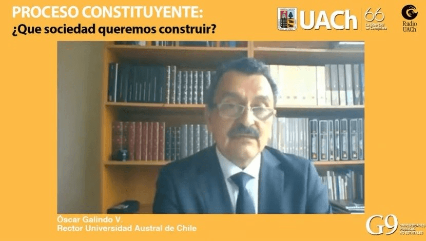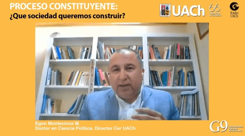 El encuentro fue moderado por el Director del Centro de Estudios Regionales UACh, Dr. Egon Montecinos, quien recordó que “la dinámica de la opinión pública y el rol de las instituciones generadoras de opinión ha cambiado. La Red de Universidades Públicas No Estatales G9 durante este proceso ha cumplido un rol importante y en el mes de mayo, a raíz de la pandemia, inició un ciclo de seminarios virtuales con el propósito de abordar ciertas temáticas de interés nacional y regional que se entrecruzaban. La pandemia se entrecruzó en Chile con el proceso constituyente”.