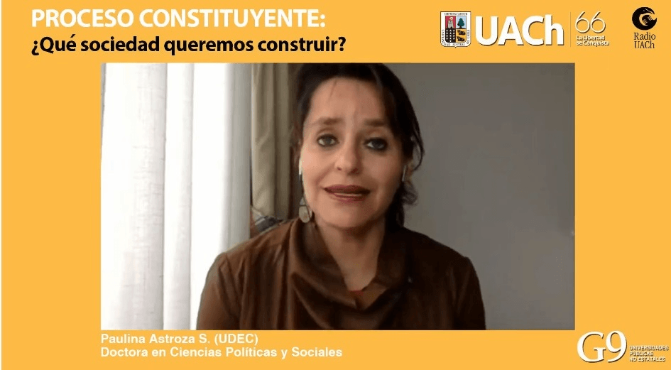 Gran cantidad de consultas y comentarios recibidos en las redes sociales fueron la prueba del interés que generó el seminario virtual “Proceso constituyente: ¿Qué sociedad queremos construir?”, encuentro que se llevó a cabo la tarde del martes 29 de septiembre y que reunió a especialistas en ciencia política y derecho constitucional de las universidades de Concepción, Católica de Temuco y Austral de Chile, quienes expusieron sobre los desafíos para nuestro país en este momento histórico.