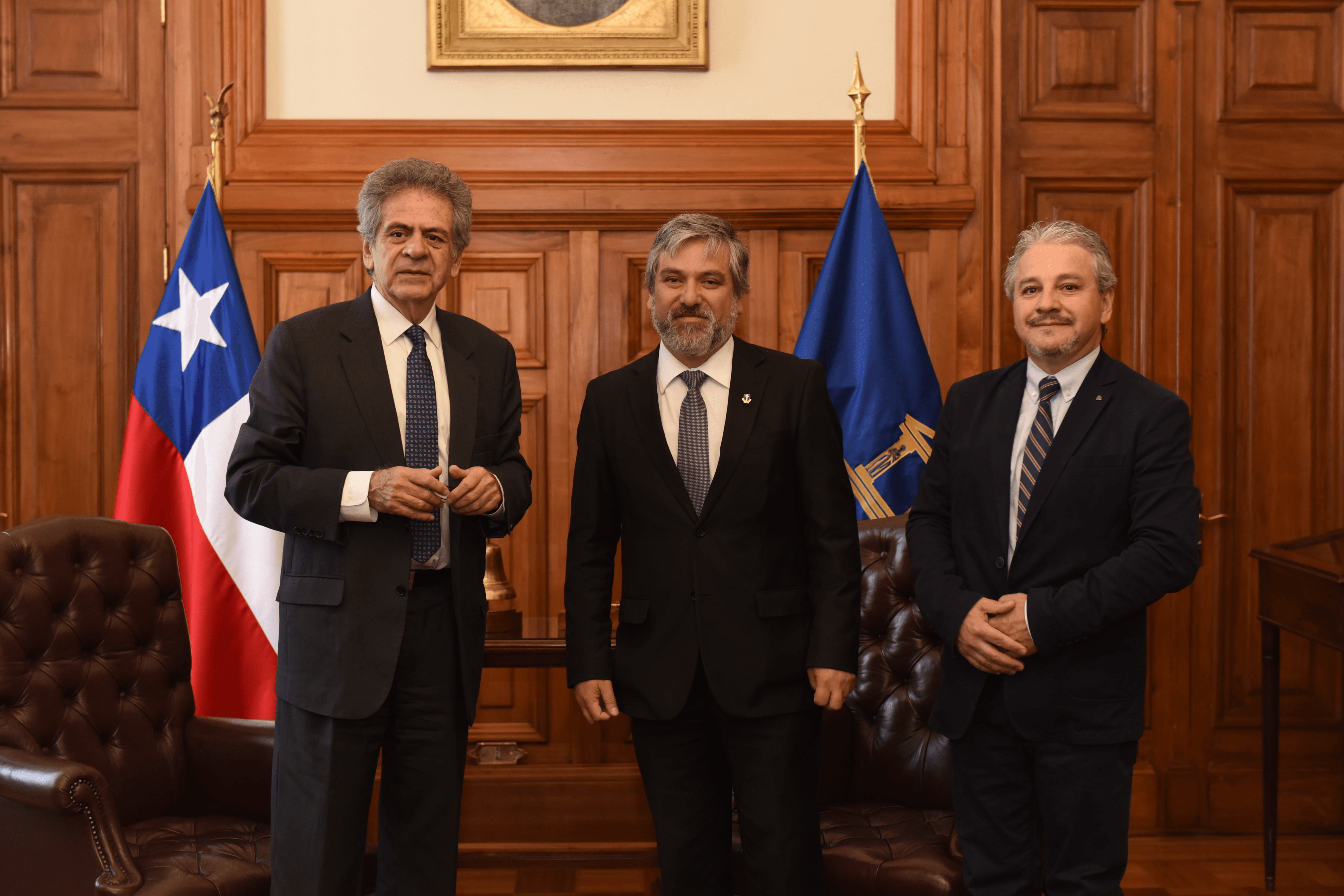 Haroldo Brito recibió al rector de la Universidad Católica del Maule, Dr. Diego Durán y al decano de la Facultad de Ciencias Sociales y Económicas, Patricio Oliva.