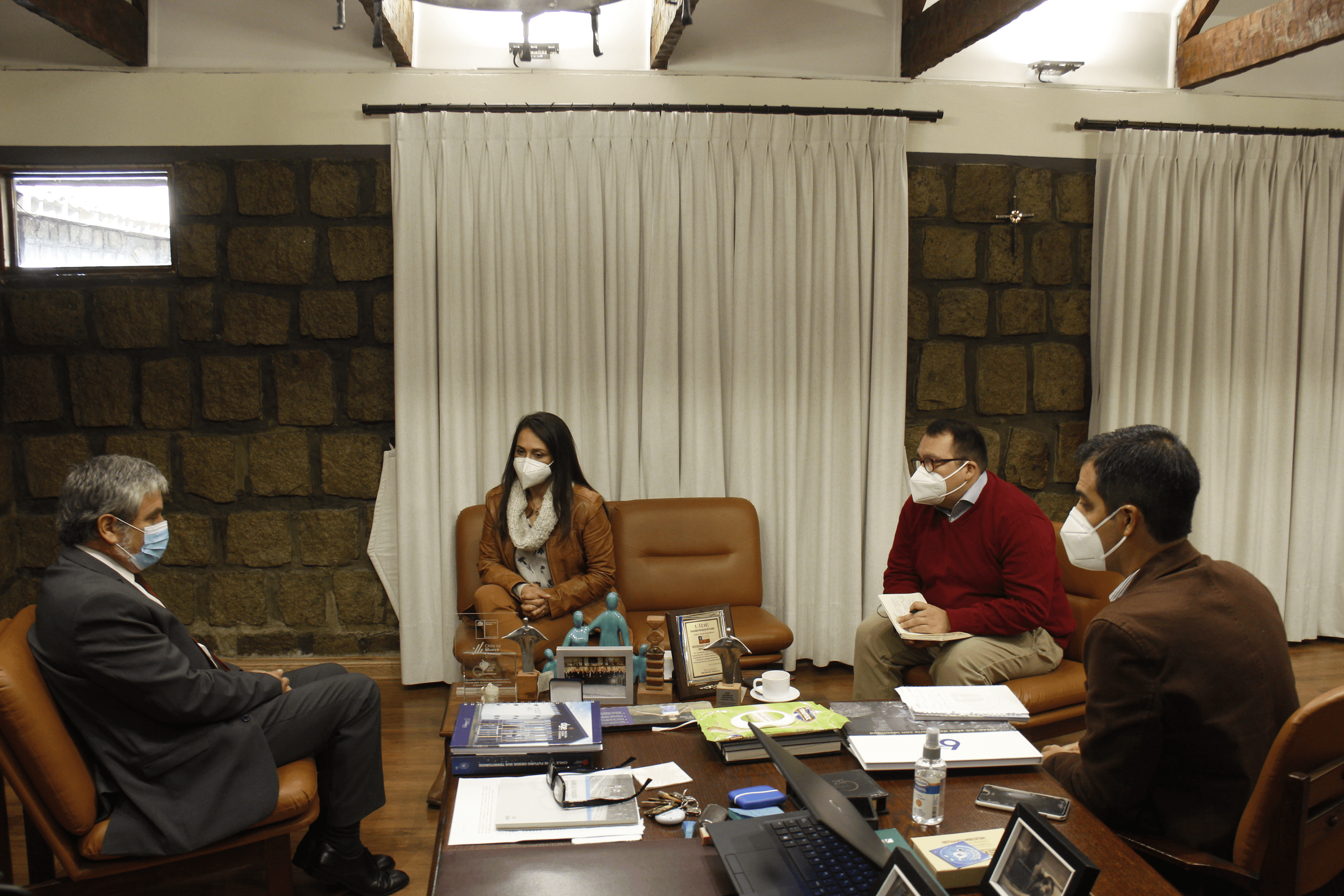 Nery Rodríguez, alcaldesa de Cauquenes llegó hasta el Campus San Miguel para reunirse con el rector Dr. Diego Durán y el director general de vinculación, Jorge Burgos.