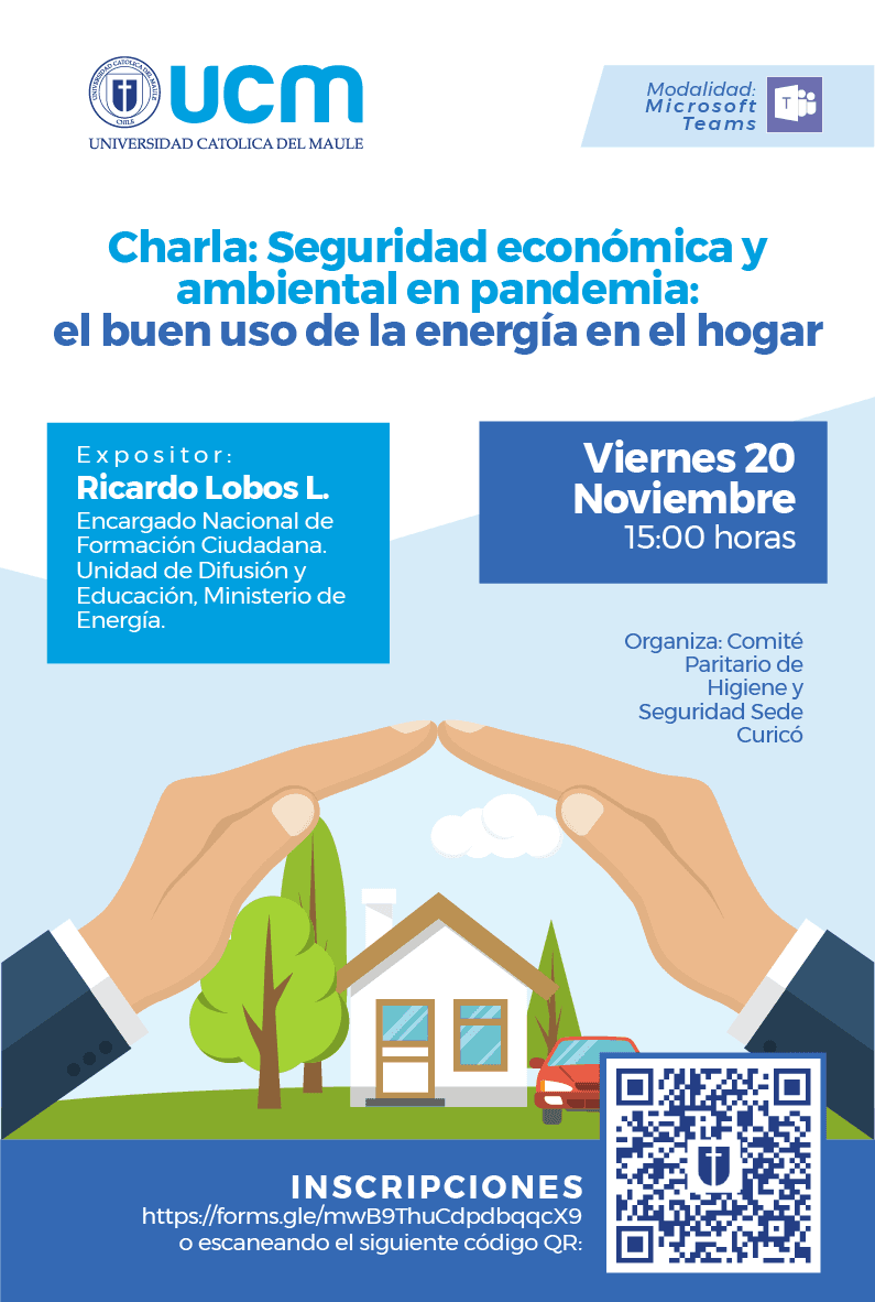 En tanto, Ricardo Lobos, encargado nacional de Formación Ciudadana del Ministerio de Energía, mencionó que “Los quiero invitar para el próximo viernes 20 de noviembre a las 15 horas, a participar de la charla en Seguridad Económica y Ambiental en Pandemia, donde abordaremos las temáticas del buen uso de la energía en el hogar. Les envío un saludo fraternal a todos y todas en la Universidad Católica del Maule, que están organizando esta actividad”.