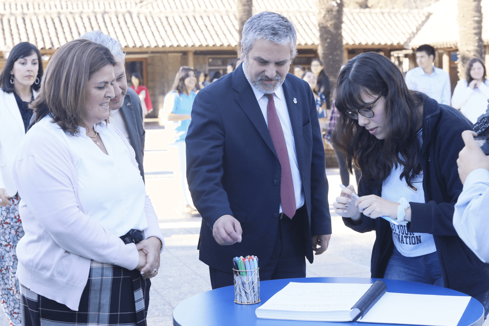 Por ello, al momento de lanzarse oficialmente la campaña interna, dos blancos de tiro, fueron instalados en el Patio Las Palmeras del Campus San Miguel, en donde todos los asistentes pudieron probar su puntería y escribir voluntariamente algún compromiso personal, pensando en la acreditación.