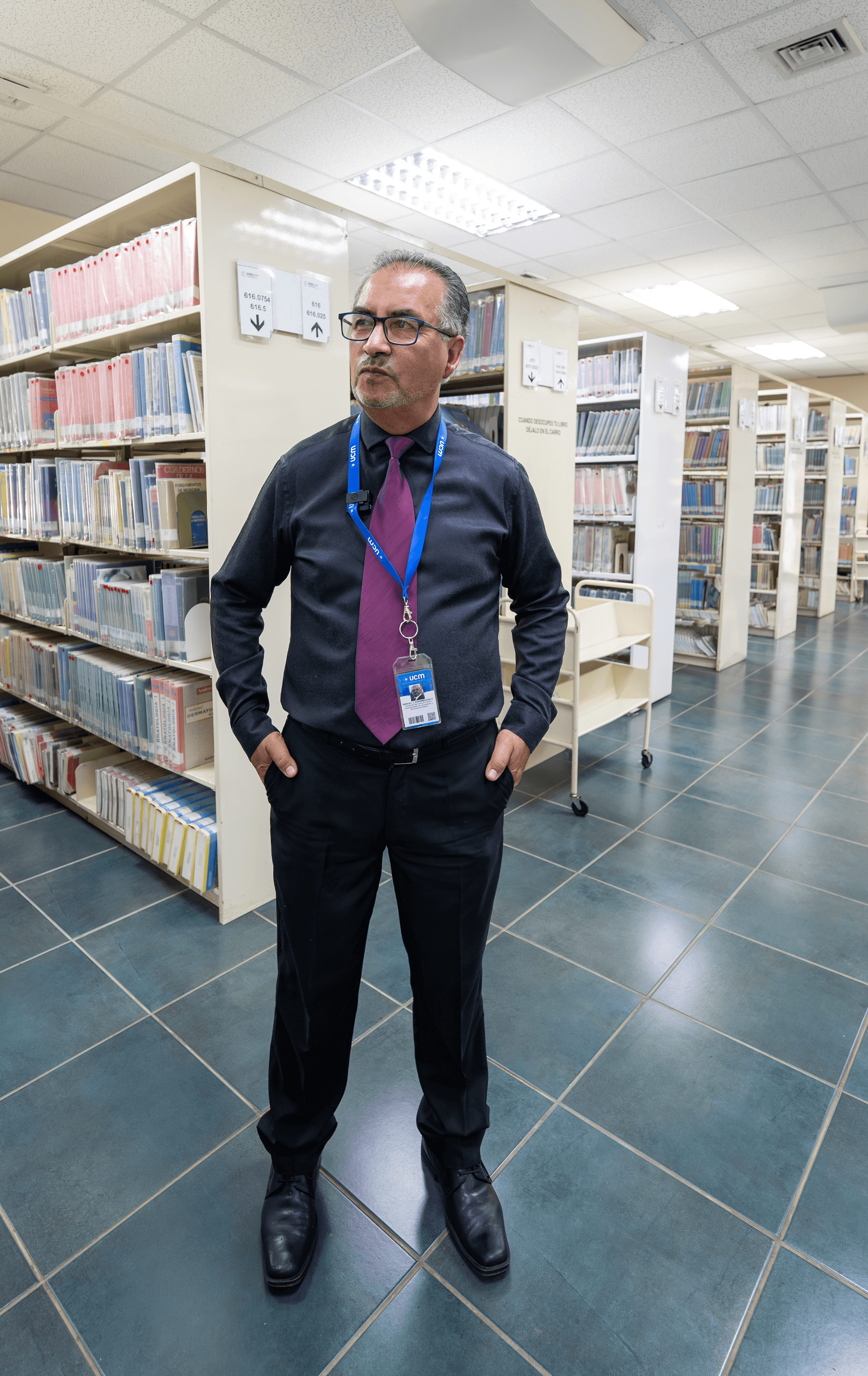 Manuel Norambuena, quien actualmente trabaja en el Sistema de Biblioteca, tras trabajar por más de 30 años en la UCM se acogió a retiro voluntario.