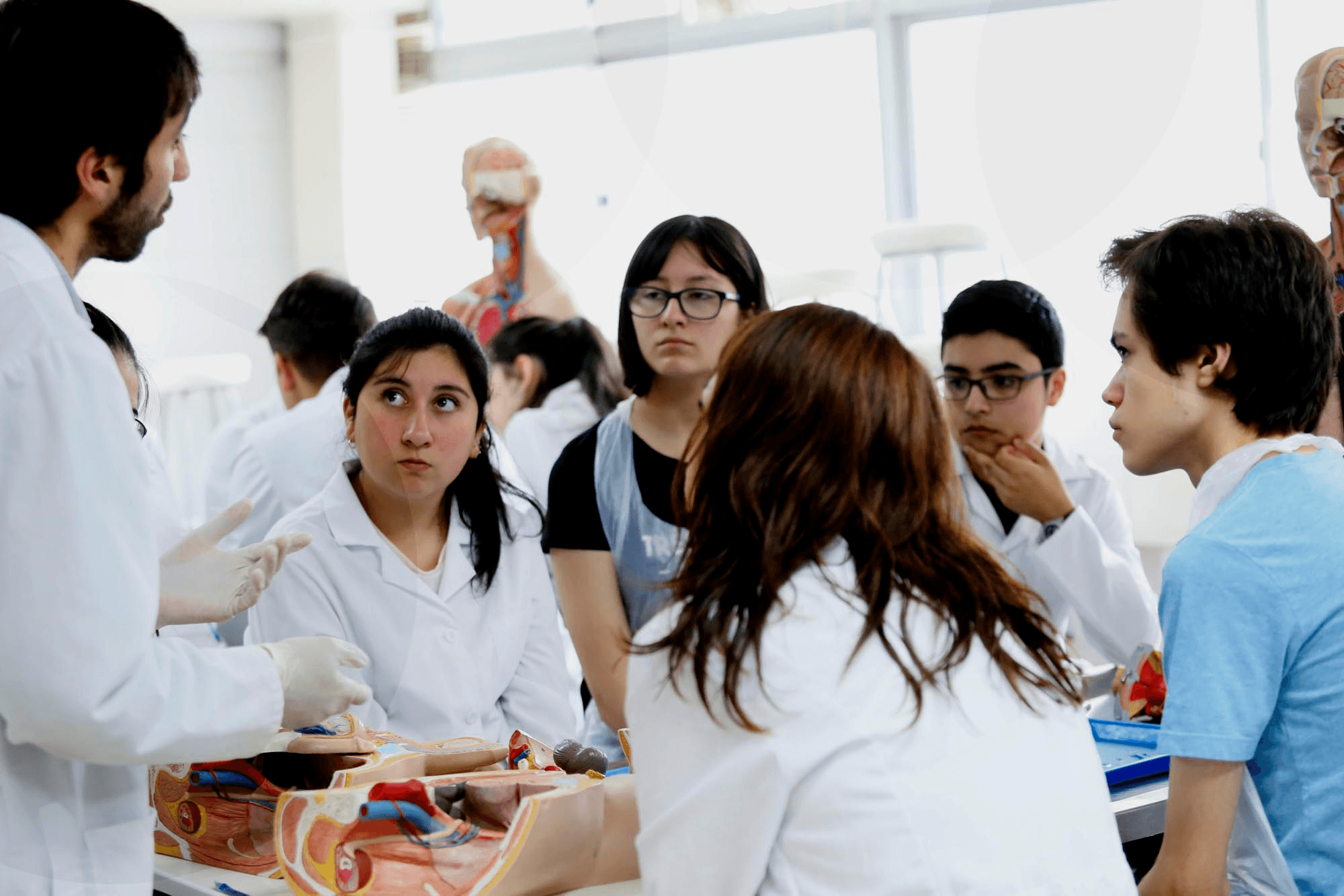 Algunos de los contenidos revisados fueron: historia de la Medicina, desde la prehistoria, los chamanes, etc. hasta el futuro, la genética. “Han conocido cómo funcionan los sistemas del cuerpo humano, tuvieron una sesión de trabajo en el Laboratorio de Anatomía, que fue súper valiosa con los profesores que les hacen clases a nuestros estudiantes de Medicina, conocieron los niveles del sistema de salud, hospitales, consultorios, atención primaria, lo público y lo privado, etc. Van a ver también lo que viene después de ser médico, las especialidades, la parte clínica, el médico como docente, como investigador, con la colaboración de docentes de la Escuela”, detalló la Dra. Rojas.