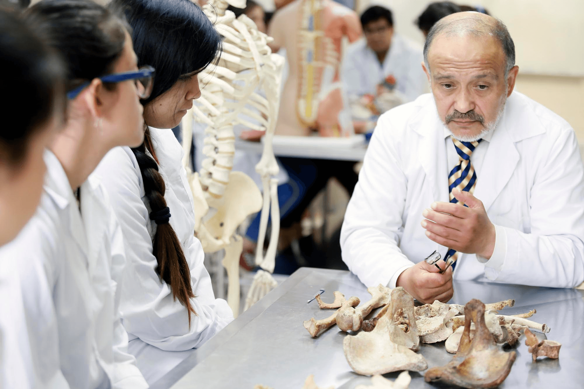 Las sesiones se han organizado con algunas presentaciones tipo clase, pero lo más importante ha sido la formación por competencias y trabajo autónomo guiado por el equipo del Laboratorio de Anatomía, por un grupo de docentes que acompañaron el proceso de aprendizaje durante estas dos semanas y del equipo de alumnos tutores, que colaboraron de manera fundamental en la entrega de conocimientos, como explicó la Dra. María Soledad Rojas, docente a cargo del curso.