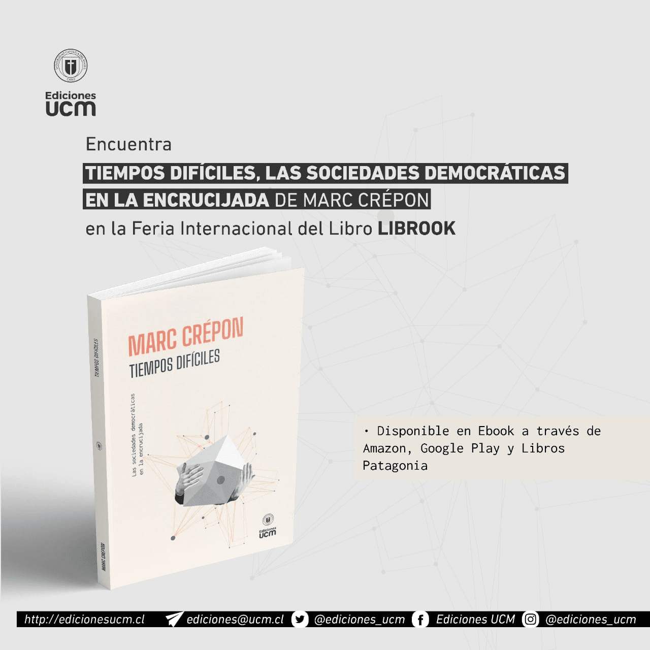 Para visitar el stand de Ediciones UCM y participar del evento debes ingresar al sitio web https://librook.cl/