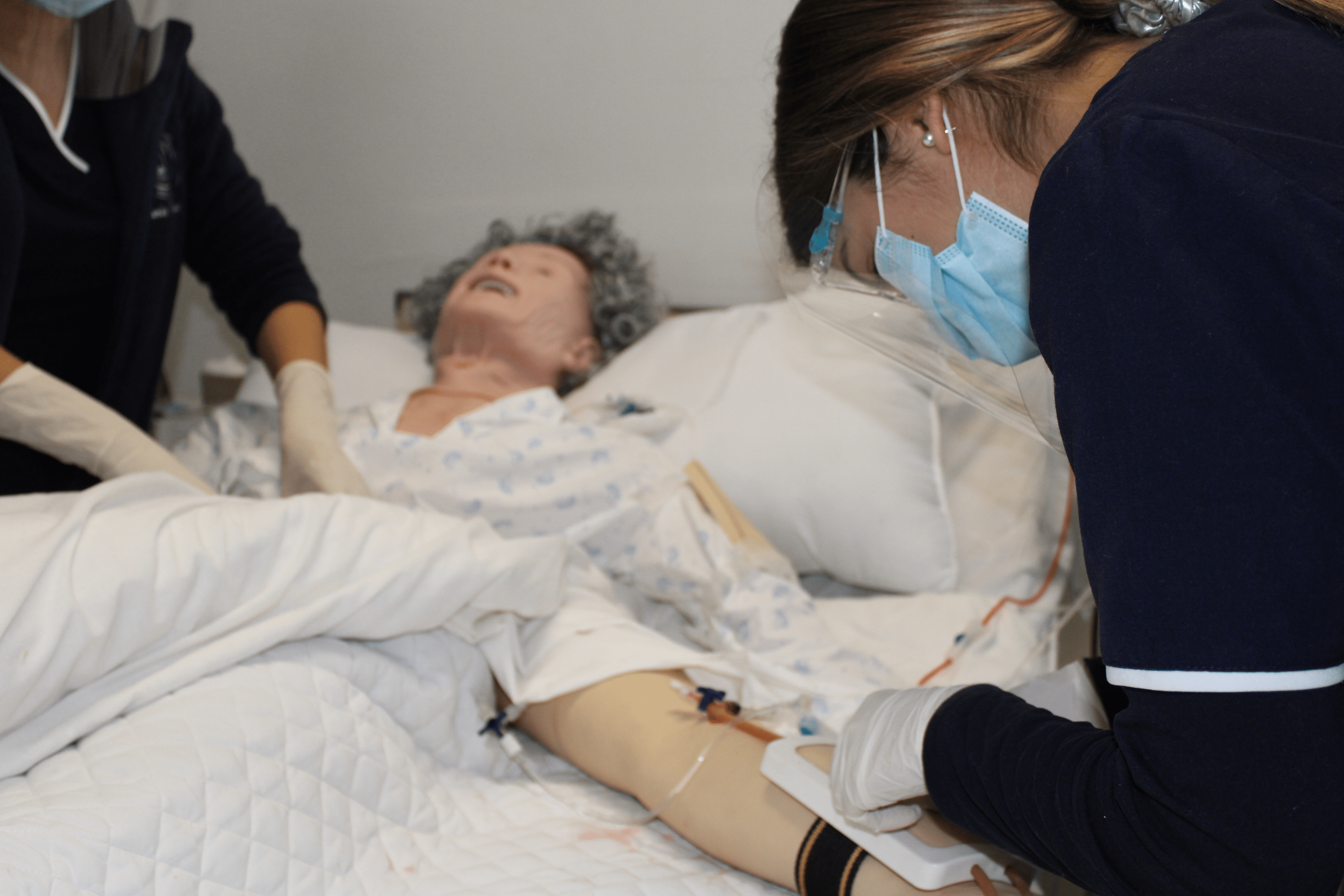 Por ello, la Facultad de Ciencias de la Salud invirtió más de 50 millones de pesos nuevos fantomas, insumos y equipos médicos para que los estudiantes de ambas sedes retomaran las prácticas en presenciales con estrictas medidas de aforo y bioseguridad, en un escenario que replica el contexto clínico.