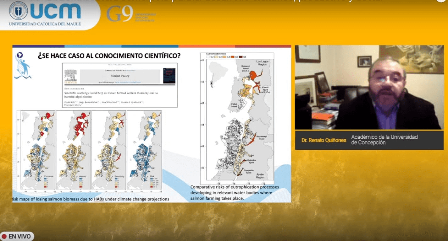 Problemas que, según el académico, deben abordase a través de investigaciones interdisciplinarias. “La manera de enfrentar de forma más racional u óptima el manejo de la pesca y la acuicultura frente a esta tremenda incerteza y complejidad y lo que hemos hecho, es crear el enfoque eco sistémico de la pesca y de la acuicultura, donde el conocimiento de la ciencia se interpreta en forma integral, es decir, el enfoque eco sistémico de la pesca es un método de gestión que analiza las pesquerías de una forma distinta, buscando interpretar la realidad del recurso con otros, con respecto al ecosistema y las otras realidades que están ocurriendo en este caso en la zona costera”, reflexionó.