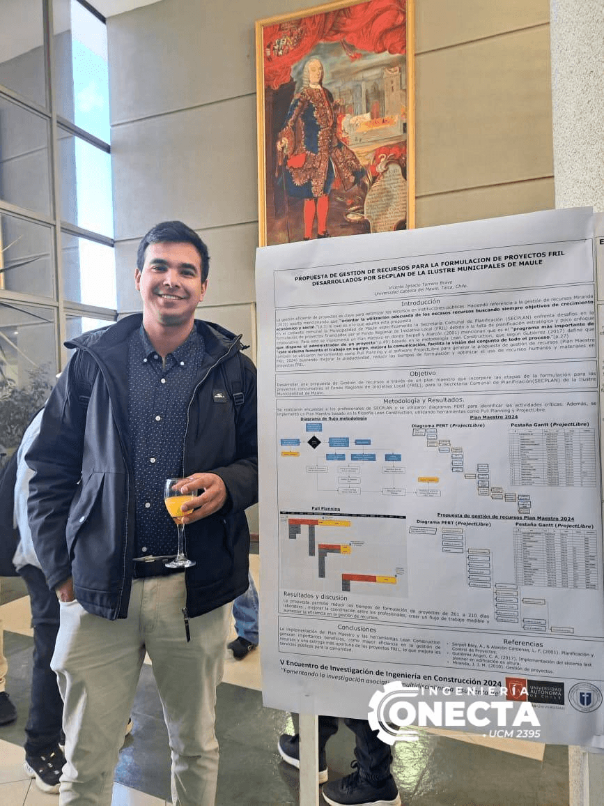 El pasado lunes 21 de octubre, el director de la Escuela de Ingeniería Civil de la UCM, Francisco Pastén-Araya, junto a su colega Wilmer Bueno y un grupo de estudiantes, presentaron sus trabajos en el V Encuentro de Investigación de Ingeniería en Construcción realizado en la U. Autónoma, evento que reunió a investigadores y estudiantes de diversas áreas, resaltando la importancia de la colaboración entre universidades y la relevancia del innovador proyecto LLAMA.