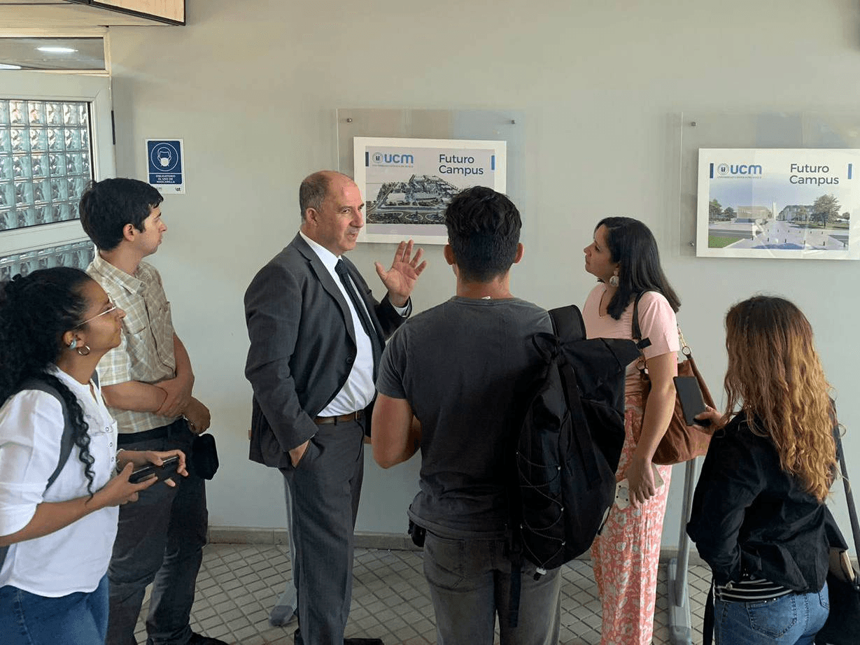 Compuesto por cinco estudiantes acompañados por el académico, el grupo participó activamente en una visita guiada por las instalaciones de la UCM, lo que enriqueció su experiencia y comprensión del entorno universitario.