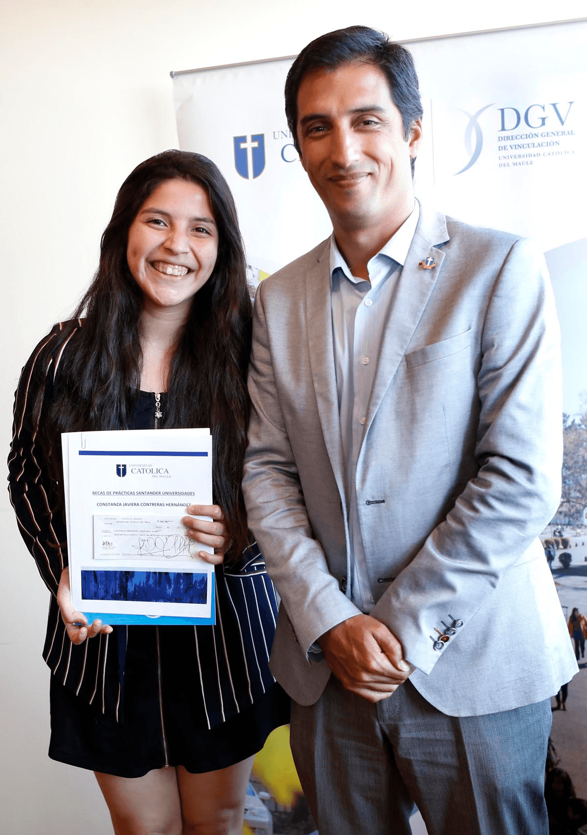 La beca fue entregada en una ceremonia simbólica, donde también participaron el decano de la Facultad de Ciencias Sociales y Económicas, Patricio Oliva; el decano de la Facultad de Ciencias Básicas, Dr. Jorge González; el director de la Escuela de Sociología, Marcelo Pinochet; el director de la escuela de Pedagogía en Ciencias, Manuel Gutiérrez, entre otros.