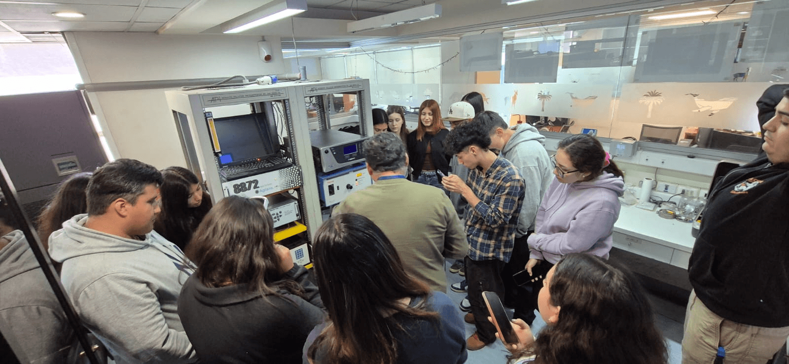 Los estudiantes visitaron el Laboratorio de Instrumentación del Ministerio del Medio Ambiente (MMA) y el EnviroHealth Data Observatory de la Universidad del Desarrollo (UDD). En el MMA los estudiantes pudieron ver y conocer cómo la instrumentación y monitoreo del aire es importante para controlar y reducir la contaminación atmosférica en beneficio de la salud pública a nivel urbano.
