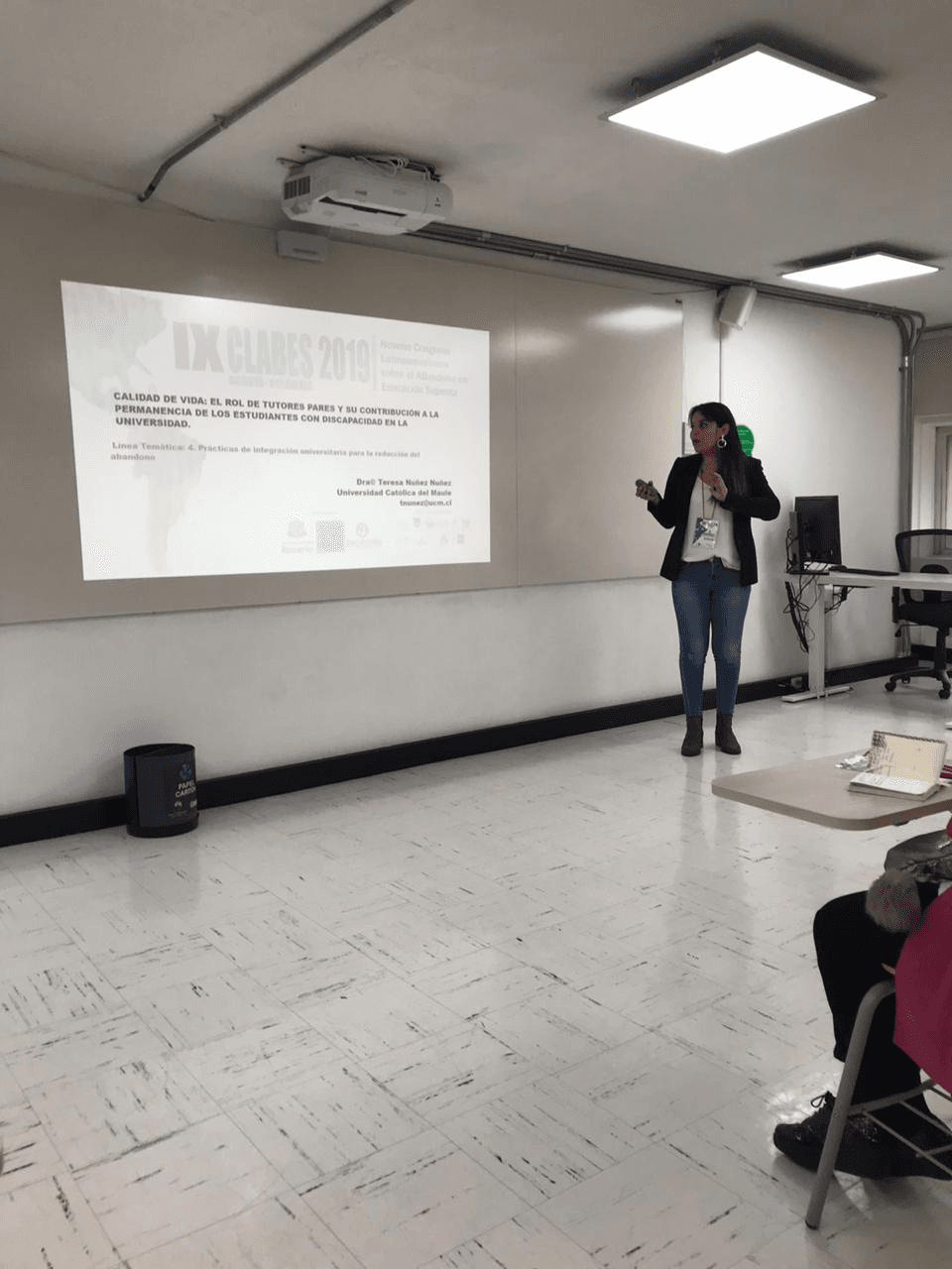 “Dentro de las actividades de acompañamiento que realiza el PARI a estudiantes con discapacidad se encuentran los tutores pares, quienes representan un apoyo directo según la necesidad del propio estudiante, por ejemplo, acompañar en tomas de ramos, toma de apuntes, informar fechas de trabajos y evaluaciones, adaptación a la vida universitaria, siendo una actividad con foco en la reducción del abandono de los estudiantes con discapacidad, además del fortalecimiento de su calidad de vida”, comentó Teresa Núñez respecto de su ponencia.