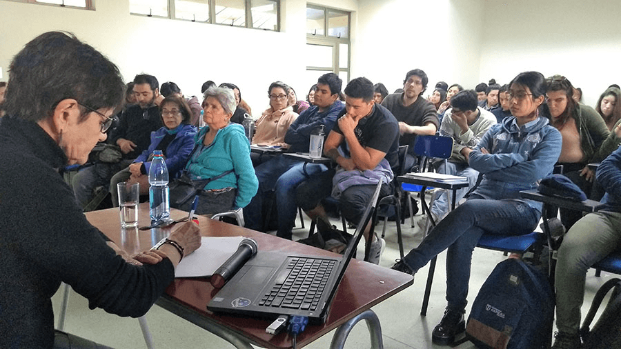 María Cristina Carrasco, profesora de la Universidad de Barcelona, impartió una conferencia ante estudiantes y académicos de las Escuelas de Psicología, Sociología e Ingeniería Comercial. En la instancia abordó su propuesta teórica y de acción política.