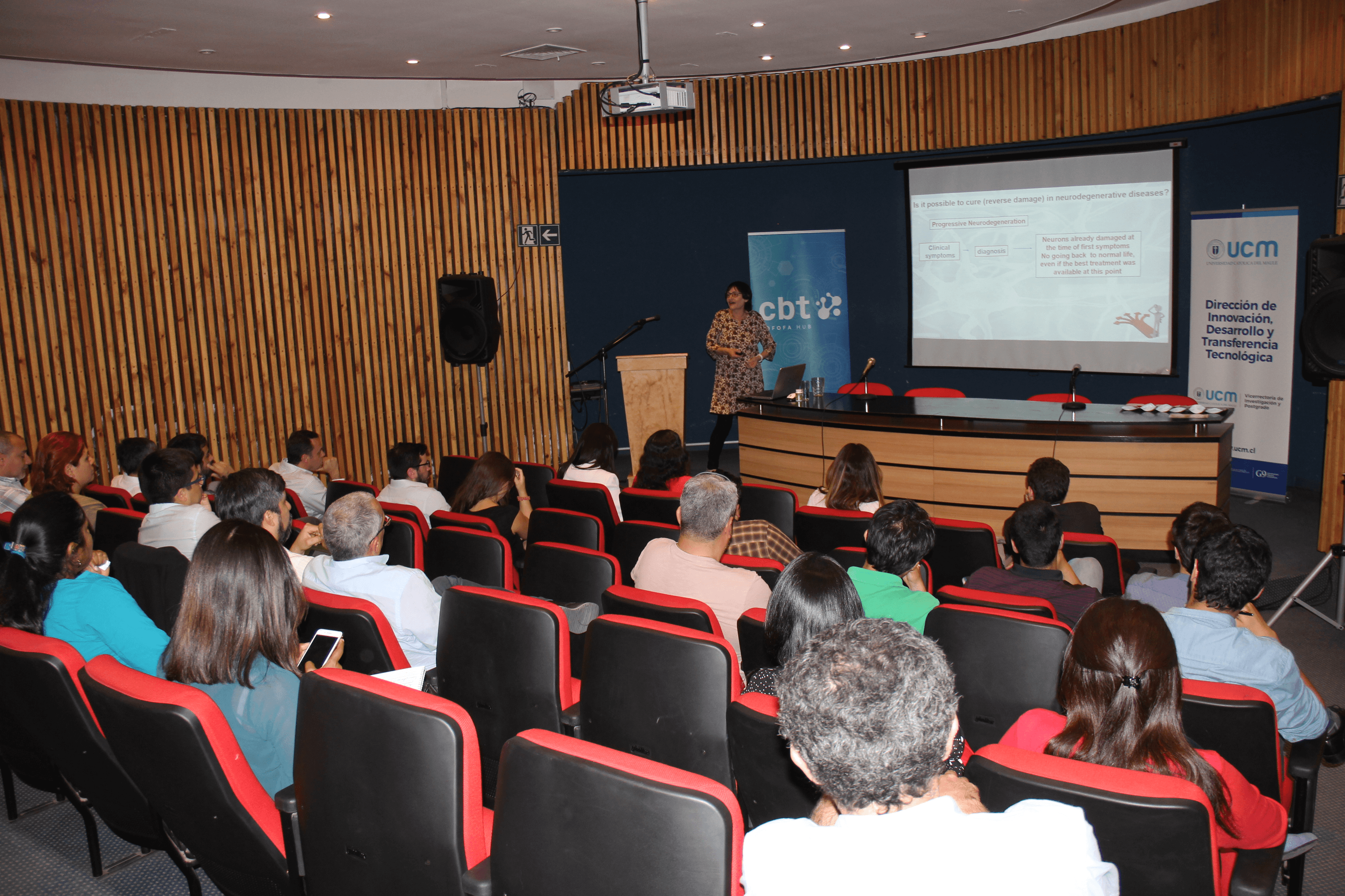 Para potenciar esta relación entre investigadores, emprendedores y otros actores que permitan realizar ciencia aplicada, es que hasta la UCM llegó la Dra. Ruth Gabizon, quien expuso su caso personal de éxito.