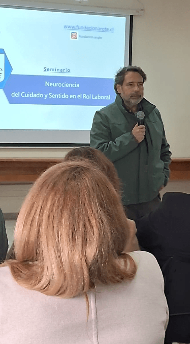 La jornada estuvo a cargo de Hugo Leiva, fundador y director científico de la Fundación ArteQte, quien expuso sobre los aportes del pensamiento de Humberto Maturana y las neurociencias al ámbito laboral, destacando que el cuidado es un pilar esencial de la convivencia y del desarrollo humano.