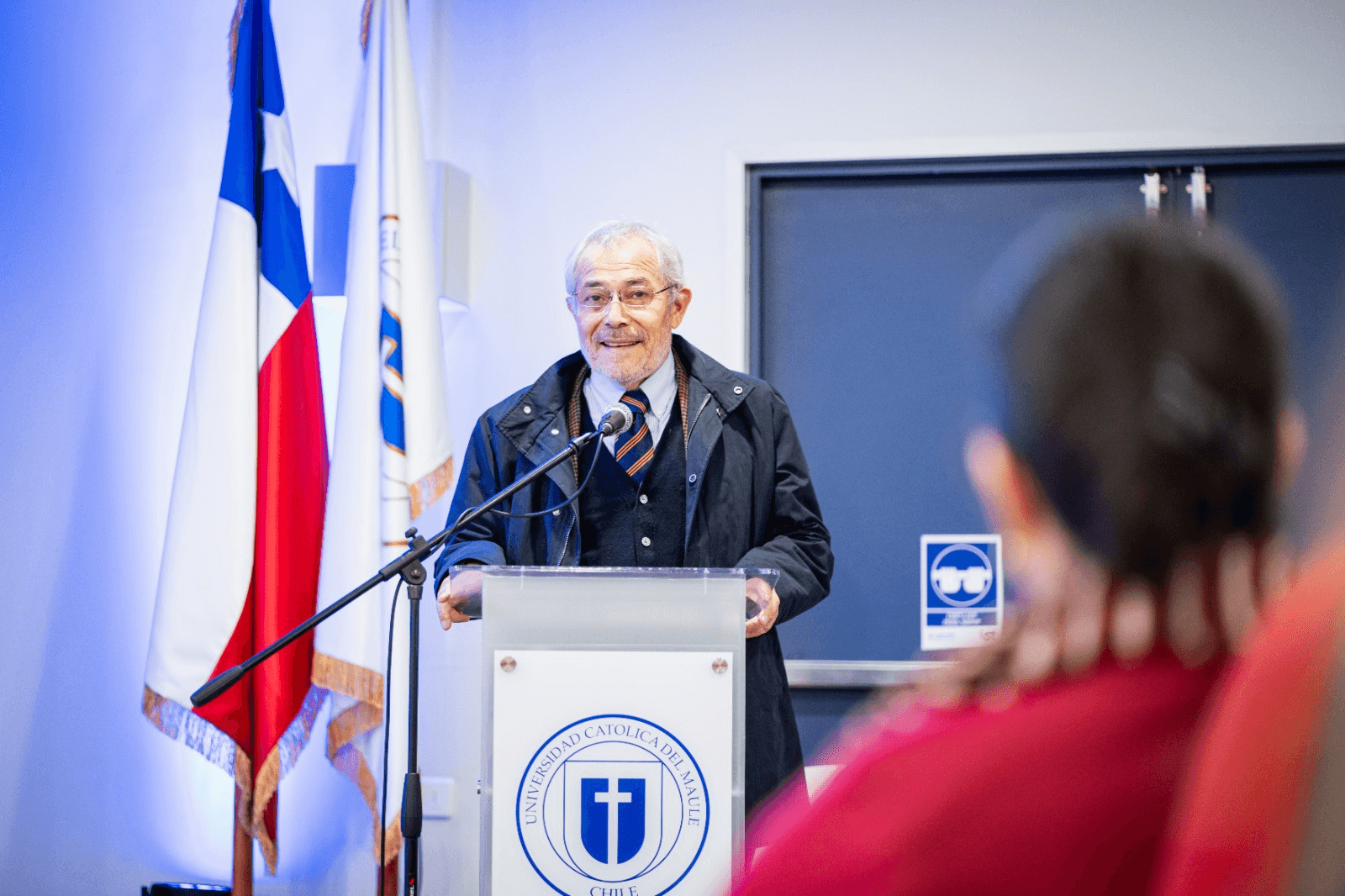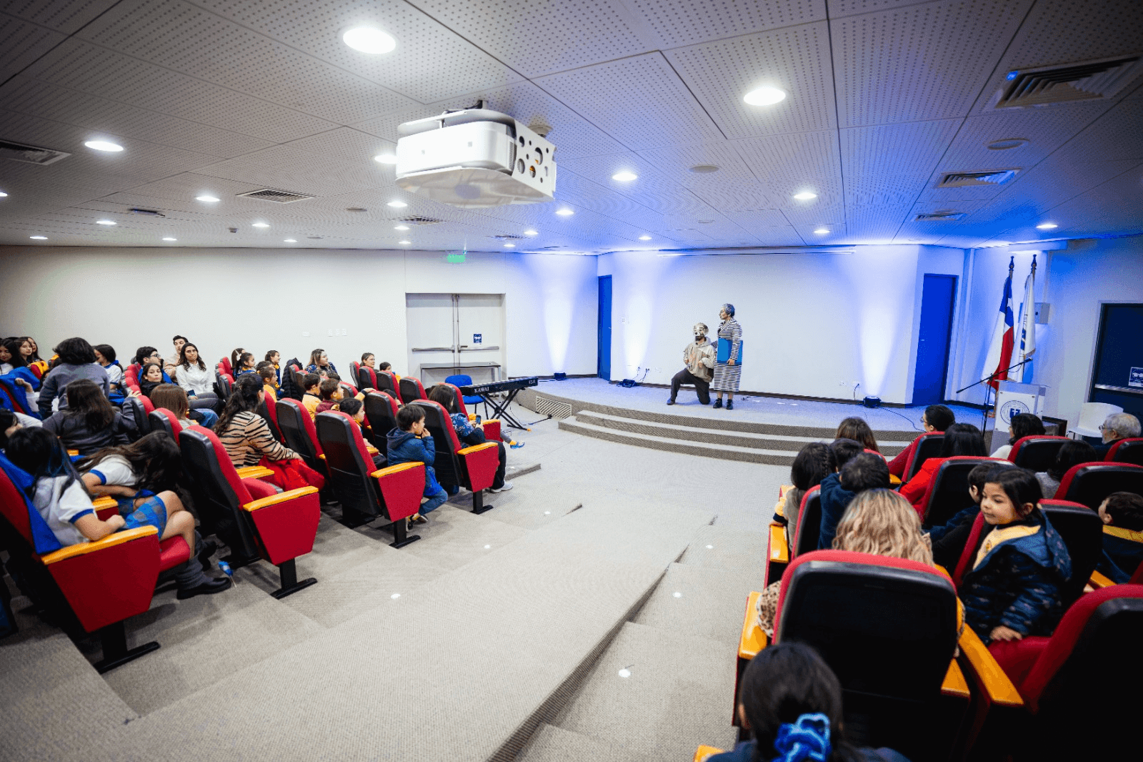 La ceremonia también incluyó un momento lúdico con la aparición de Terri, el perrito de Gabriela Mistral, que sorprendió a los asistentes. El acto culminó con la presentación del Coro de Voces Blancas del Colegio Concepción de Talca, quienes interpretaron un repertorio breve con un cierre festivo y emotivo.