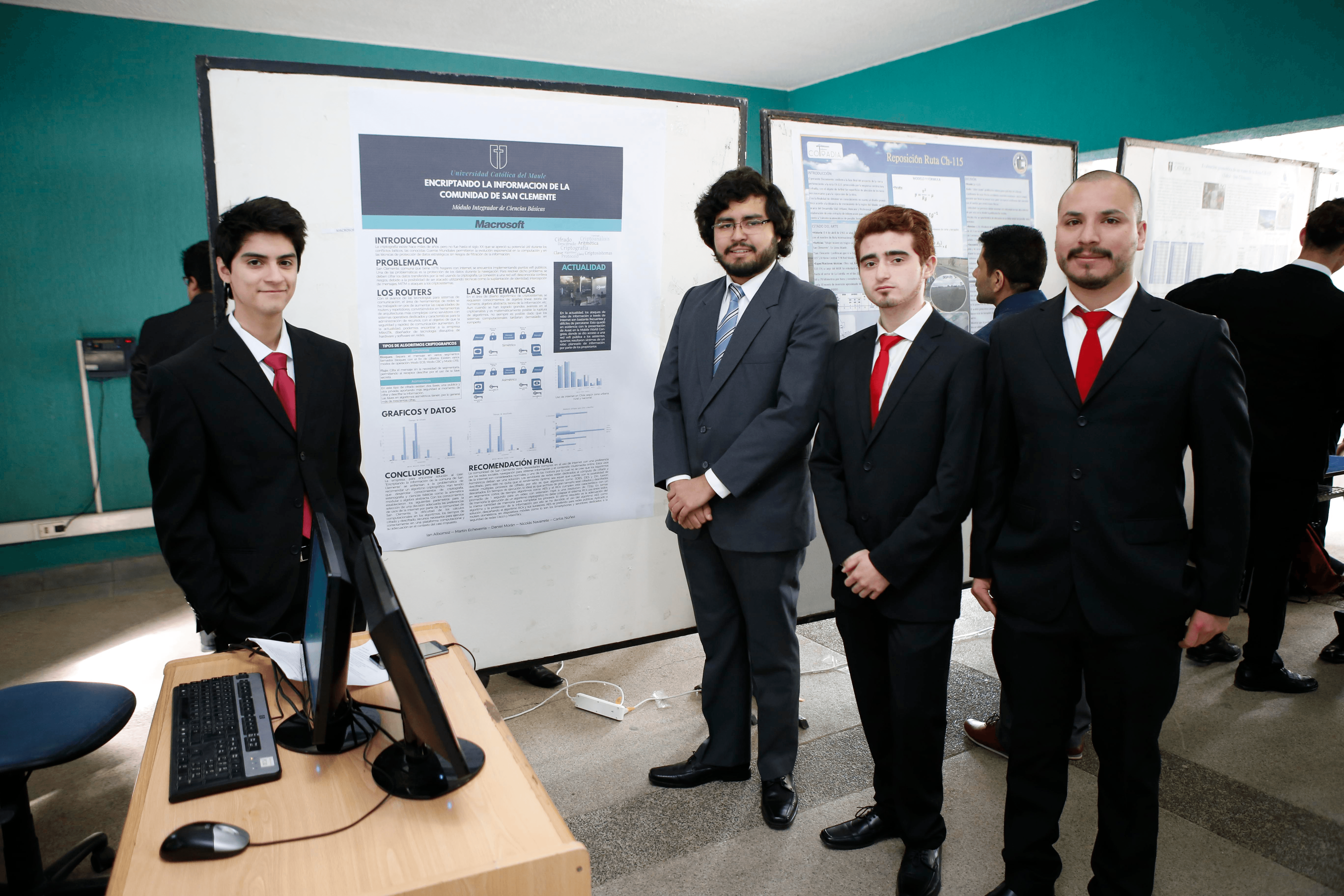 Nicolás Navarrete, estudiante de Ingeniería Civil Informática y quien participó de la muestra a través de su proyecto Macrosoft, relató que “la problemática que se nos planteó fue cómo proteger la información de la gente de San Clemente, porque el proyecto se trata de poner wifi en las calles, principalmente en los postes, para que la gente en la ciudad tenga acceso a internet”, dijo.