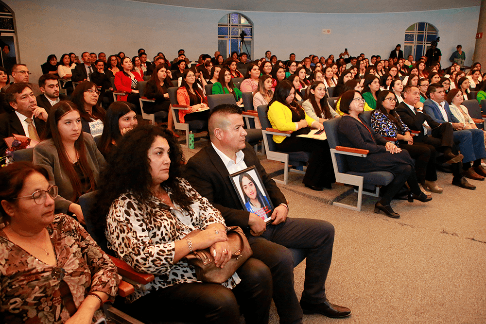 La profesora Andrea Micaela Casanova Rojas recibió el reconocimiento como mejor rendimiento académico de la generación de graduados, y habló en representación de sus compañeros: “Mis primeras palabras son para nuestras colegas Bárbara Gutiérrez y Nazareth Urra, quienes han partido, pero vivirán eternamente en nuestros corazones. Los primeros días estuvieron cargados de esperanzas e ilusiones, también de temor frente al nuevo desafío, no obstante, poco a poco fuimos forjando vínculos y apoyándonos con tal de hacer más llevadero el proceso”.