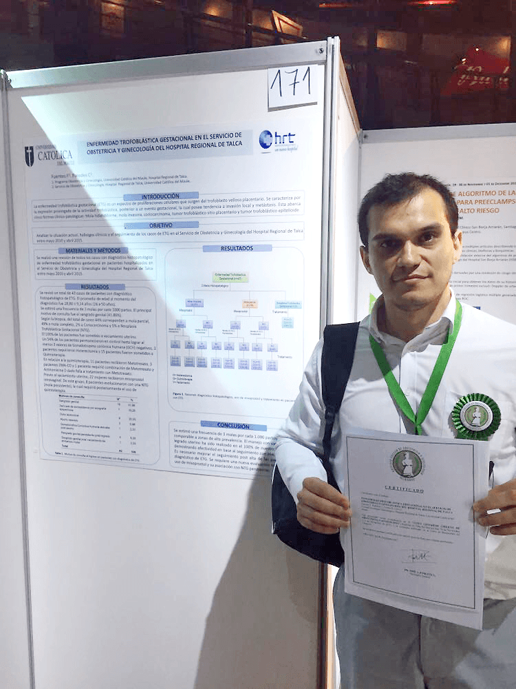 El poster llamado, Enfermedad Trofoblástica Gestacional en el Servicio de Obstetricia y Ginecología del Hospital Regional de Talca, del médico formado en la UCM que actualmente está en su último año de especialización, a través de las Becas Maule, fue destacado como el mejor de su categoría.