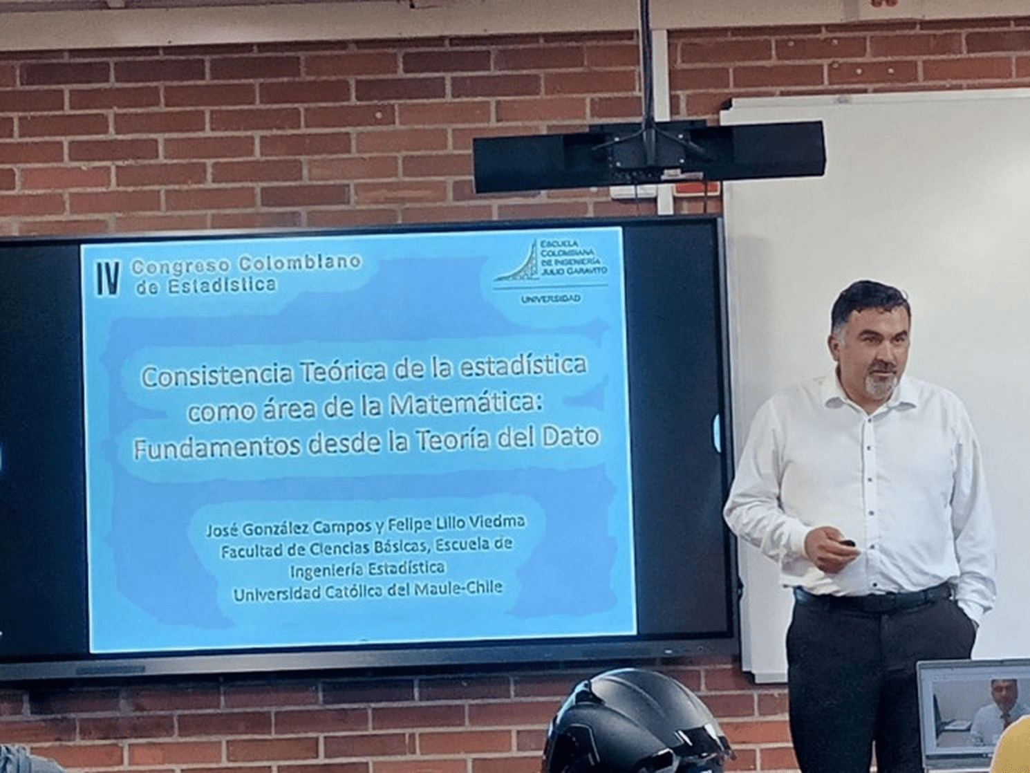 La mañana arrancó con la inscripción en el IV Congreso Colombiano organizado por la Sociedad Colombiana de Estadística y la Universidad Escuela Colombiana de Ingeniería, Julio Garavito, con el apoyo de la Sociedad de Estadística e Investigación Operativa de España como entidad invitada. A continuación, en la Universidad Militar Nueva Granada, el Dr. González dictó la charla “Desafíos de la Inteligencia Artificial a la luz de los Asistentes Pedagógicos Virtuales”, donde presentó los últimos desarrollos de APV interactivos y sus aplicaciones educativas.