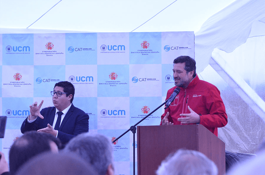Con la presencia del Ministro de Desarrollo Social y Familia, Sebastián Sichel, el Intendente de la Región del Maule, Pablo Milad, el Rector de la UCM, Diego Durán, el Presidente de la Fundación CAT Español-UCM, Félix Jiménez, el Alcalde de la Municipalidad de Talca, Juan Carlos Díaz, el Seremi de Desarrollo Social y Familia, Juan Eduardo Prieto, la Directora nacional de Senadis, María Ximena Rivas, la Directora regional de Senadis, Vanessa Valdés y el decano de la Facultad de Ciencias de la Educación, Rodrigo Vargas Vitoria, se llevó a cabo la ceremonia de colocación de la primera piedra del Centro de Atención Temprana CAT Español-UCM.