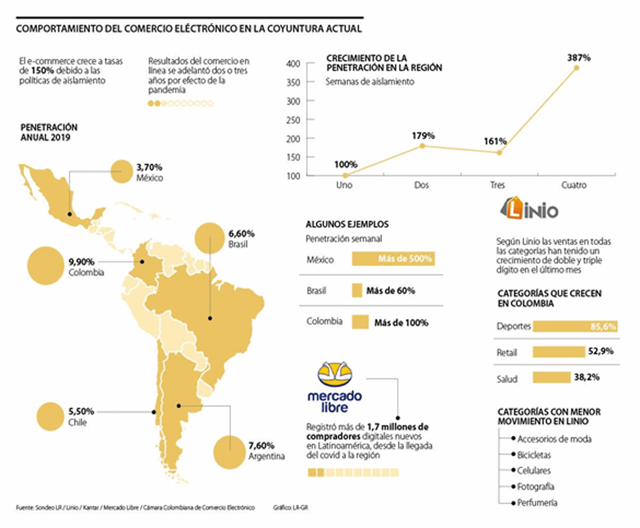El aumento de comercio electrónico explicó el académico de la UCM, significa más ancho de banda. “En Latinoamérica Mercadolibre informó un crecimiento del 300%, o sea, ninguna empresa está preparada para asumir un crecimiento de esa magnitud en un periodo tan corto, ese crecimiento se proyectaba para los próximos años y no para un par de meses. Redbank en Chile informó hace aproximadamente cuatro semanas que el aumento de las transacciones electrónicas vía Redbank subió en un 20% en un mes”, indicó.