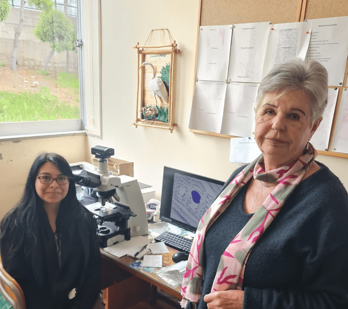 Además, durante su estancia, la Dra. Montenegro perfeccionó sus conocimientos en la técnica de Hibridación In Situ con apoyo de la investigadora del Centro de Estudios Avanzados en Zonas Áridas (CEAZA), Dra. Roxana González y la destacada integrante del equipo de la Dra. Lohrmann, Anita Valdivia. Esta metodología combina herramientas moleculares y observación microscópica, permitiendo detectar secuencias específicas de ácidos nucleicos en tejidos animales. En este caso, fue utilizada para identificar bacterias gramnegativas asociadas a moluscos bivalvos, reforzando su aplicación en el diagnóstico de patologías marinas.