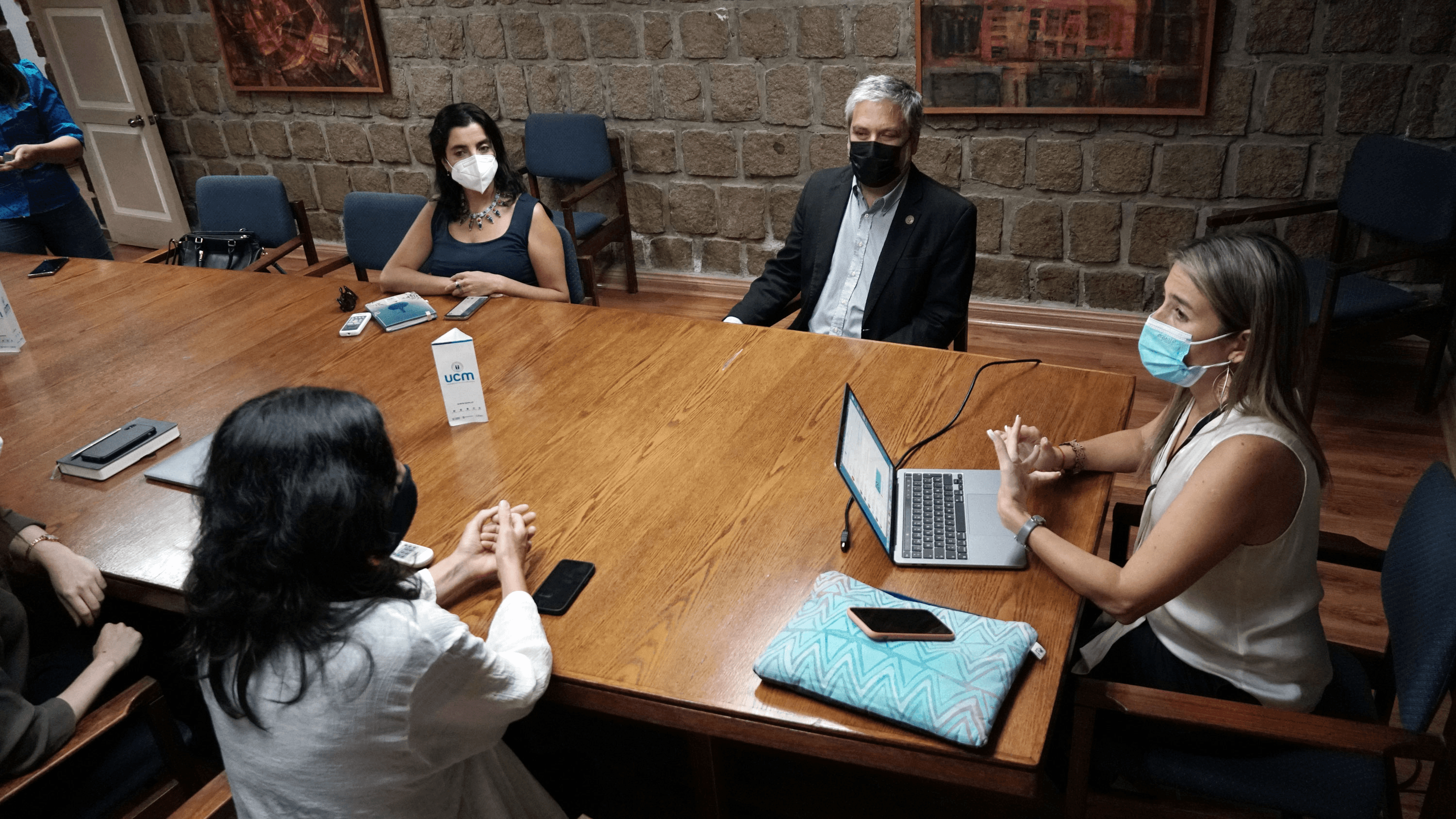 La reunión con las autoridades de la UCM, fue desarrollada en el Campus San Miguel encabezada por el rector del plantel, Dr. Diego Durán Jara, la vicerrectora de investigación y postgrado, Dra. María Teresa Muñoz, y la directora de investigación, Dra. Ingrid Carvacho. Además, participó en el encuentro Stella Moisan, directora de Desarrollo de la Universidad Autónoma de Chile.