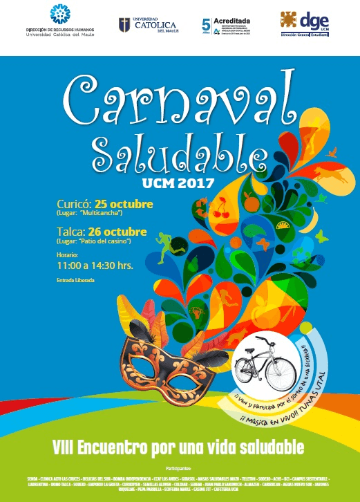 Marcela López, coordinadora de Salud Estudiantil, de la sede Curicó, explicó la actividad. “El Carnaval Saludable será enriquecedor en varios aspectos, viviremos una jornada entretenida, en la que aprenderemos conociendo actividades de cada entidad invitada, se realiza deporte, baile, degustación de alimentos saludables”, agregando luego que “nuestro fin en definitiva es intentar de algún modo concientizar a la comunidad a través de todas estas actividades y crear un cambio en el estilo de vida, así como también una cultura saludable que permanezca en el tiempo”.