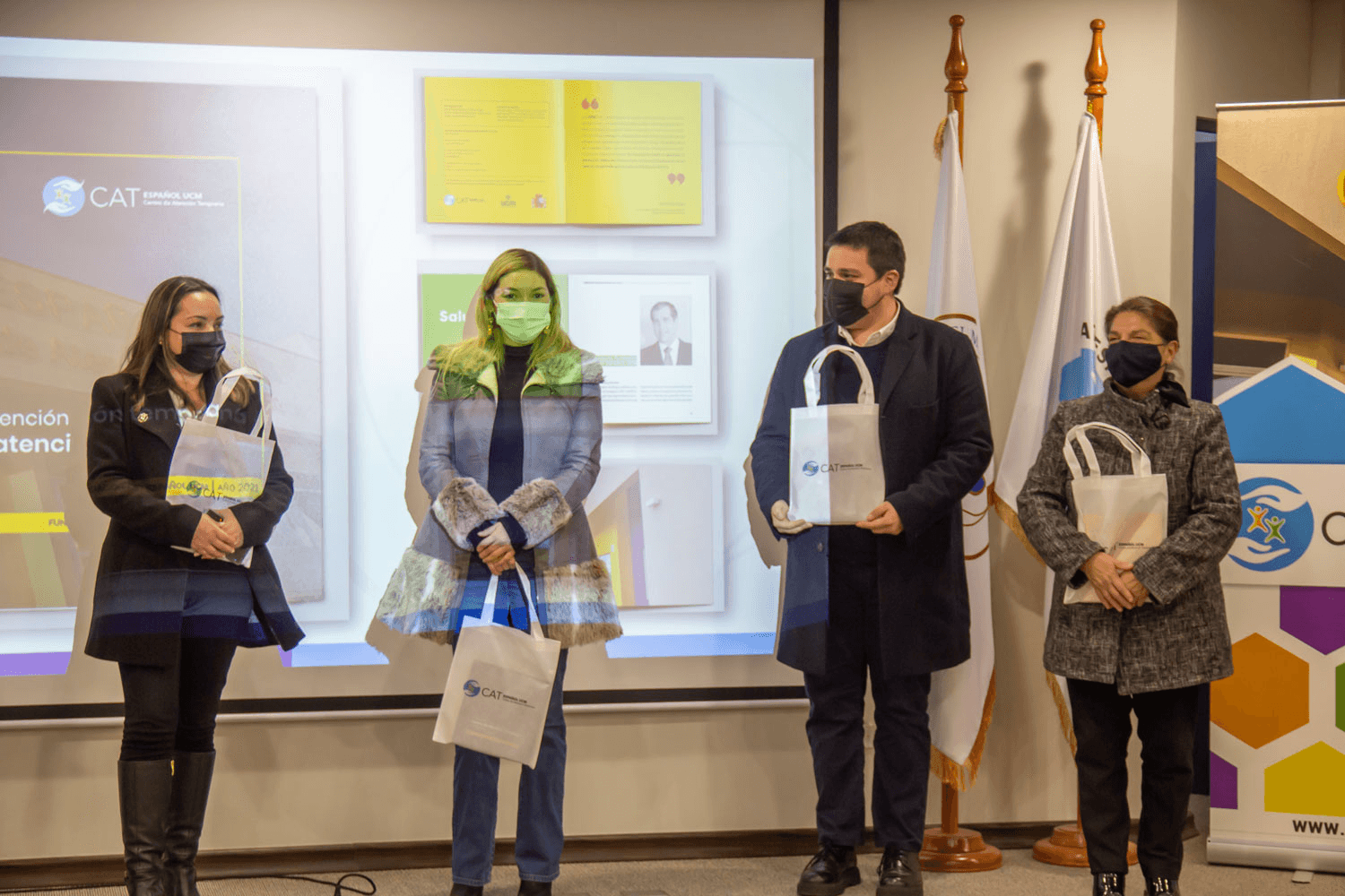 En el lanzamiento del libro participó además del rector de la UCM, Dr. Diego Durán Jara, el Dr. Pablo Hormazábal Saavedra, vicerrector de Administración y Finanzas UCM, la Dra. Paula Ceballos, decana de la Facultad de Ciencias de la Salud UCM, la Dra. Karina Vilches, directora de Posgrado UCM y directores de la Fundación CAT Español UCM.