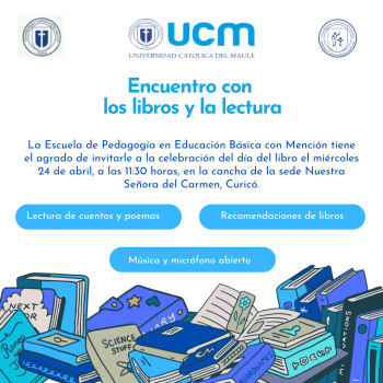 El 23 de abril se celebra el Día Internacional del Libro y, al igual que otros años, la Universidad Católica del Maule (UCM) prepara actividades para celebrar y fomentar la lectura impulsadas por la Escuela de Pedagogía en Educación General Básica con Mención en Curicó y por la Editorial del plantel, en Talca.