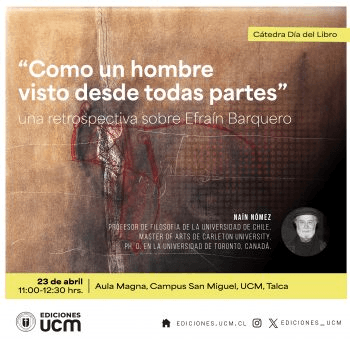 Mientras que, en Talca, la Editorial de la UCM realizará una cátedra el 23 de abril desde las 11:00 en el Aula Magna, titulada “Como un hombre visto desde todas partes”, dictada por Naín Nómez, doctor en literatura y especialista en poesía chilena.
