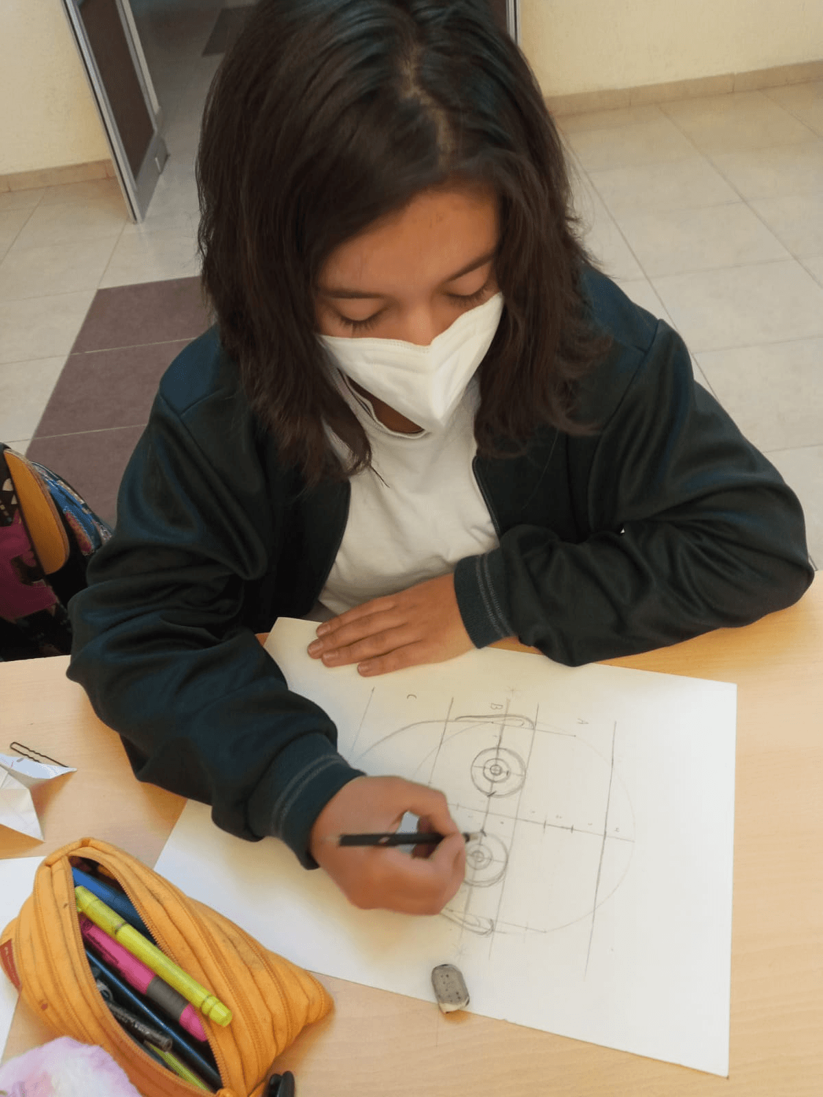 En esta instancia, las participantes descubrieron que para llegar a la composición de un retrato existe un proceso creativo, que se inicia con un estudio visual en el cual los bocetos, las matemáticas y la geometría juegan un rol fundamental. “La proporcionalidad del cuerpo y las texturas que utilizo están cargadas de geometría y mediciones, nada de esto es al azar”, comentó.