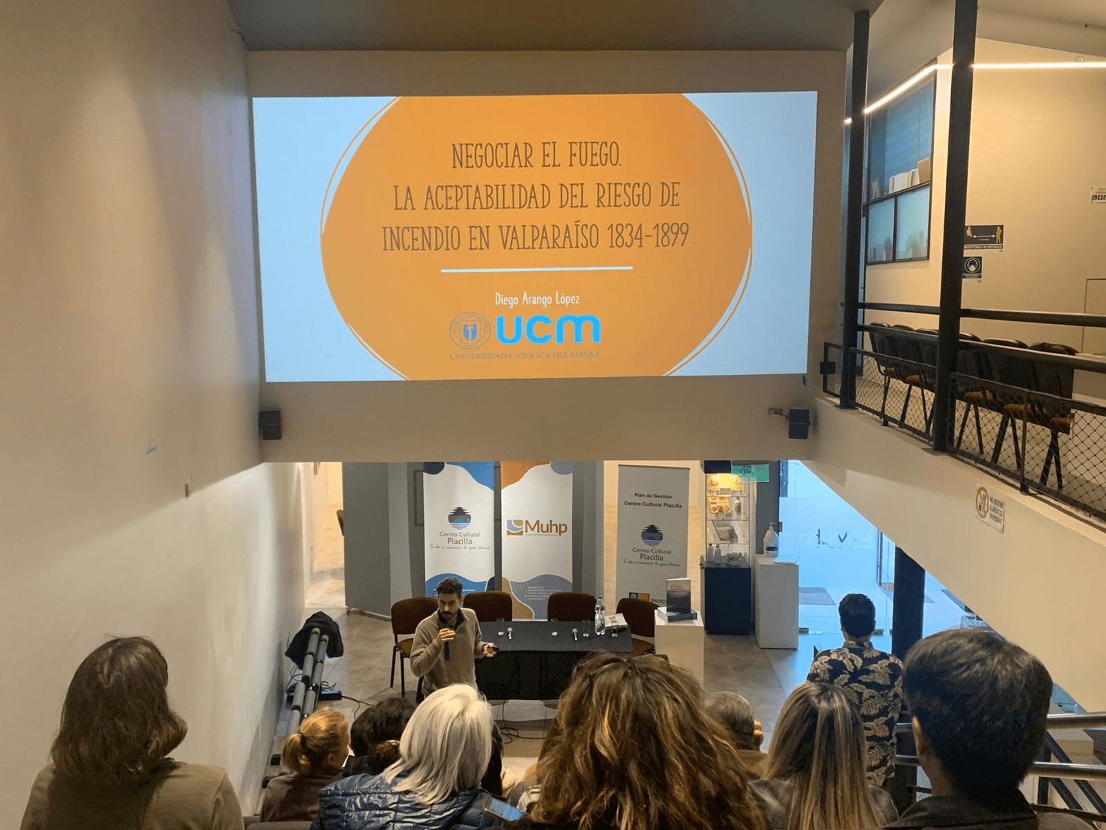 En el marco del conversatorio y lanzamiento del proyecto Fondecyt 11230957 “Agua y luz en Placilla y Valparaíso. Miradas cruzadas entre Historia y Geografía” en el Museo Histórico de Placilla, el Dr. Diego Arango López, académico de la carrera de Pedagogía en Historia, Geografía y Ciencias Sociales de la Universidad Católica del Maule (UCM) presentó la ponencia “Negociar el fuego. La aceptabilidad del riesgo de incendio en Valparaíso 1834-1899.”