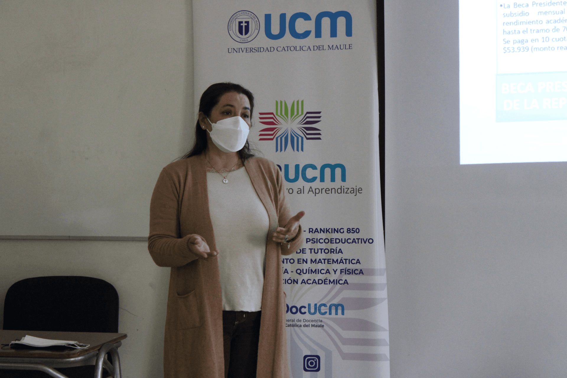 La actividad contó con la presencia del director de Docencia de Pregrado, Dr. Rodrigo Berríos Rojas, la jefa del Departamento de Beneficios Estudiantiles de la UCM, Maribel Peña, además de la facilitadora del Programa PACE de la UCM, Angélica Fuentes, donde ambas explicaron los detalles sobre postulación y beneficios.