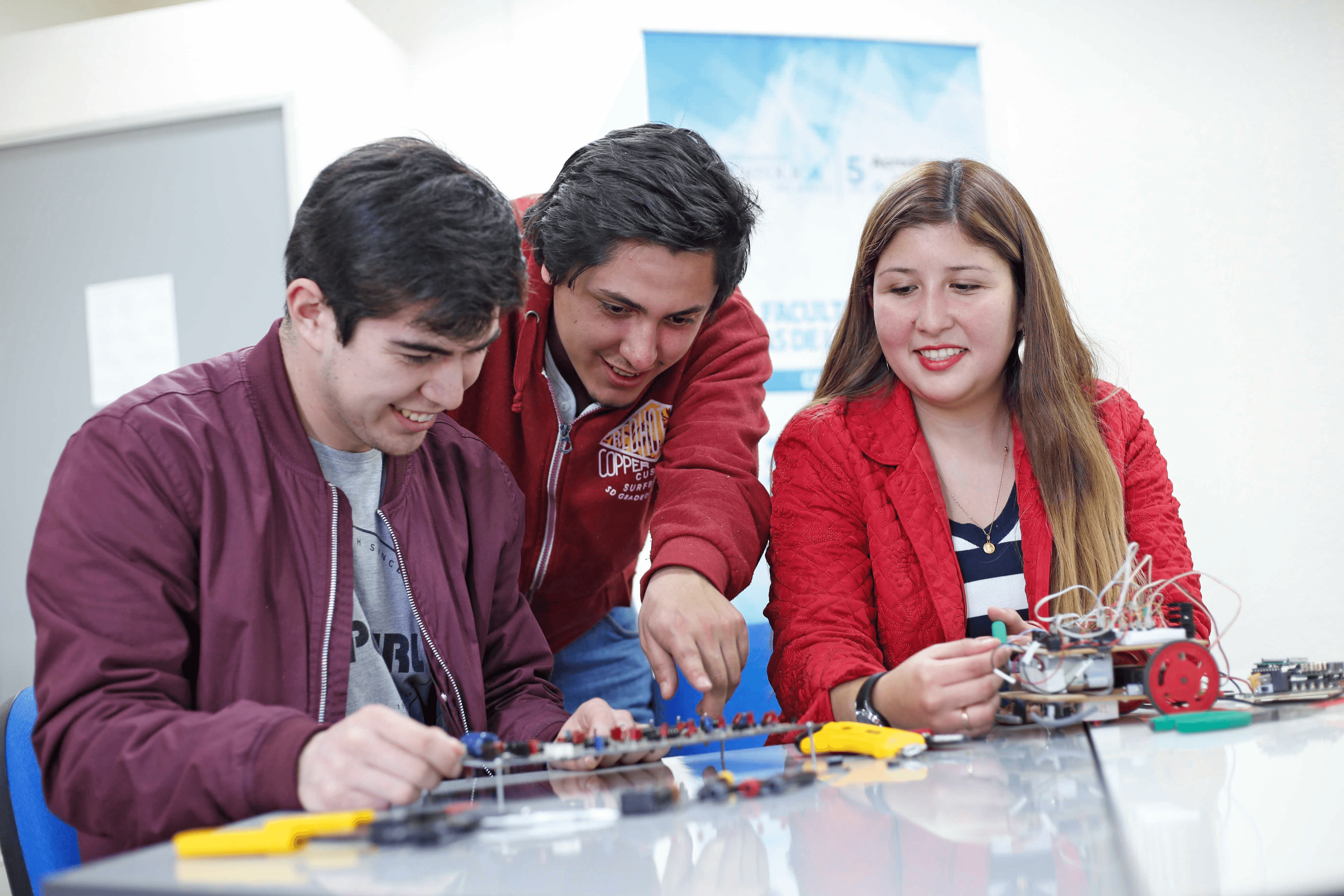 “Que los estudiantes sean mayoritariamente de la Región nos pone un tremendo desafío. La electrónica es una disciplina que hoy se mueve de manera transversal, en prácticamente cualquier área productiva o del conocimiento”, aportó la directora de Escuela de la Universidad Católica del Maule, institución joven con tradición y visión de futuro. Sobre las expectativas, Mary Carmen Jarur, afirmó que “tienen un camino que recorrer, pero eso no quita que desarrollen primero y entiendan que la formación que están recibiendo genera un compromiso con el bienestar de la sociedad y, por tanto, en la medida que se van haciendo sensibles a las necesidades de la región, perfectamente pueden a través de sus capacidades, tales como tesis, prácticas o propuestas de una empresa, generar cambios por intermedio de sus propias iniciativas en el entorno del Maule”, aseveró. Finalmente, a juicio de la académica UCM, esto depende de su “motivación, ser capaces de proponer industrias, innovaciones o microempresas de ingeniería en la Región, viendo en qué medida ellos son sensibles a sus principales procesos productivos. Si los futuros profesionales son capaces de sintonizarse con esos mercados específicos, en algún momento podríamos exportar tecnología en esas áreas”, concluyó Jarur.