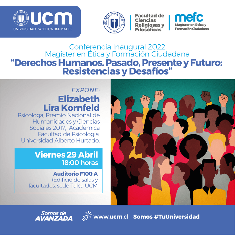 Con la ponencia de la destacada psicóloga Elizabeth Lira Kornfeld, Premio Nacional de Humanidades y Ciencias Sociales 2017, el Magíster en Ética y Formación Ciudadana dará inicio a su año académico 2022. La actividad, que se desarrollará de manera presencial, pretende ser un espacio de diálogo en torno a los derechos humanos.