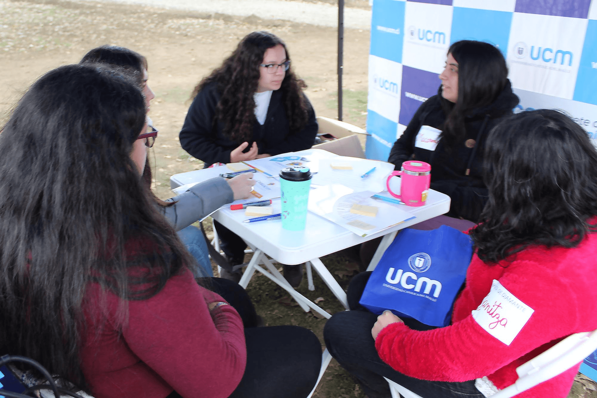 “Lo interesante es que hay distintas escuelas que están aquí, de distintas carreras, es un trabajo interdisciplinario: tenemos carreras del área de salud, áreas de la ingeniería, sociología, trabajo social, y muchas otras, además de los estudiantes del Liceo de San Clemente”, señaló Claudia Concha, directora del Centro Integral de Innovación Social de la UCM.