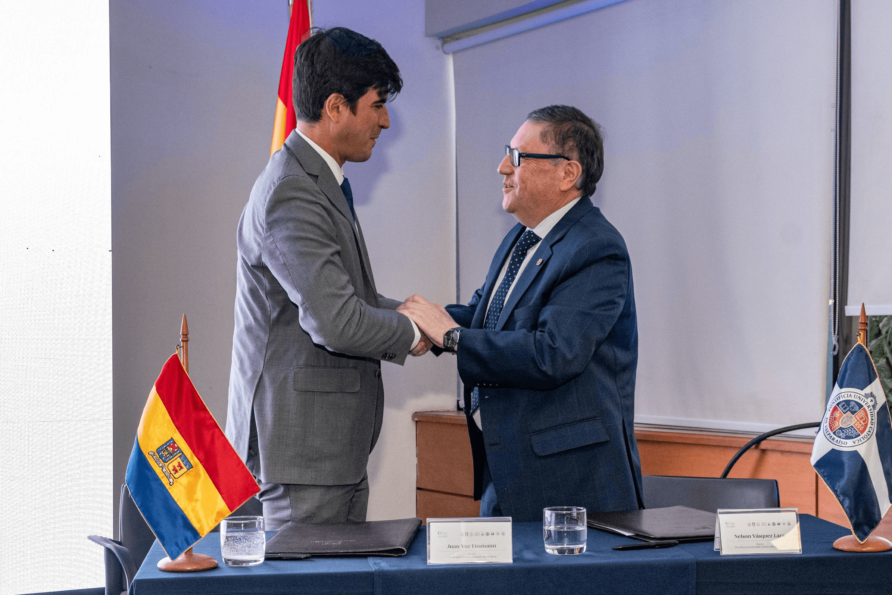 Este lunes 9 de junio, en Campus Vitacura de la Universidad Técnica Federico Santa María, celebramos el cambio de presidencia de la Red de Universidades Públicas no Estatales G9. En una ceremonia marcada por los discursos de respaldo de los ministerios de Educación, de Ciencia, Tecnología, Conocimiento e Innovación y diversas autoridades del mundo educacional, finalizó su periodo liderando la Red G9 el Dr. Nelson Vásquez Lara, Rector de la Pontificia Universidad Católica de Valparaíso (PUCV), dando paso a la presidencia del Dr. Juan Yuz Eissmann, Rector de la Universidad Técnica Federico Santa María (USM).