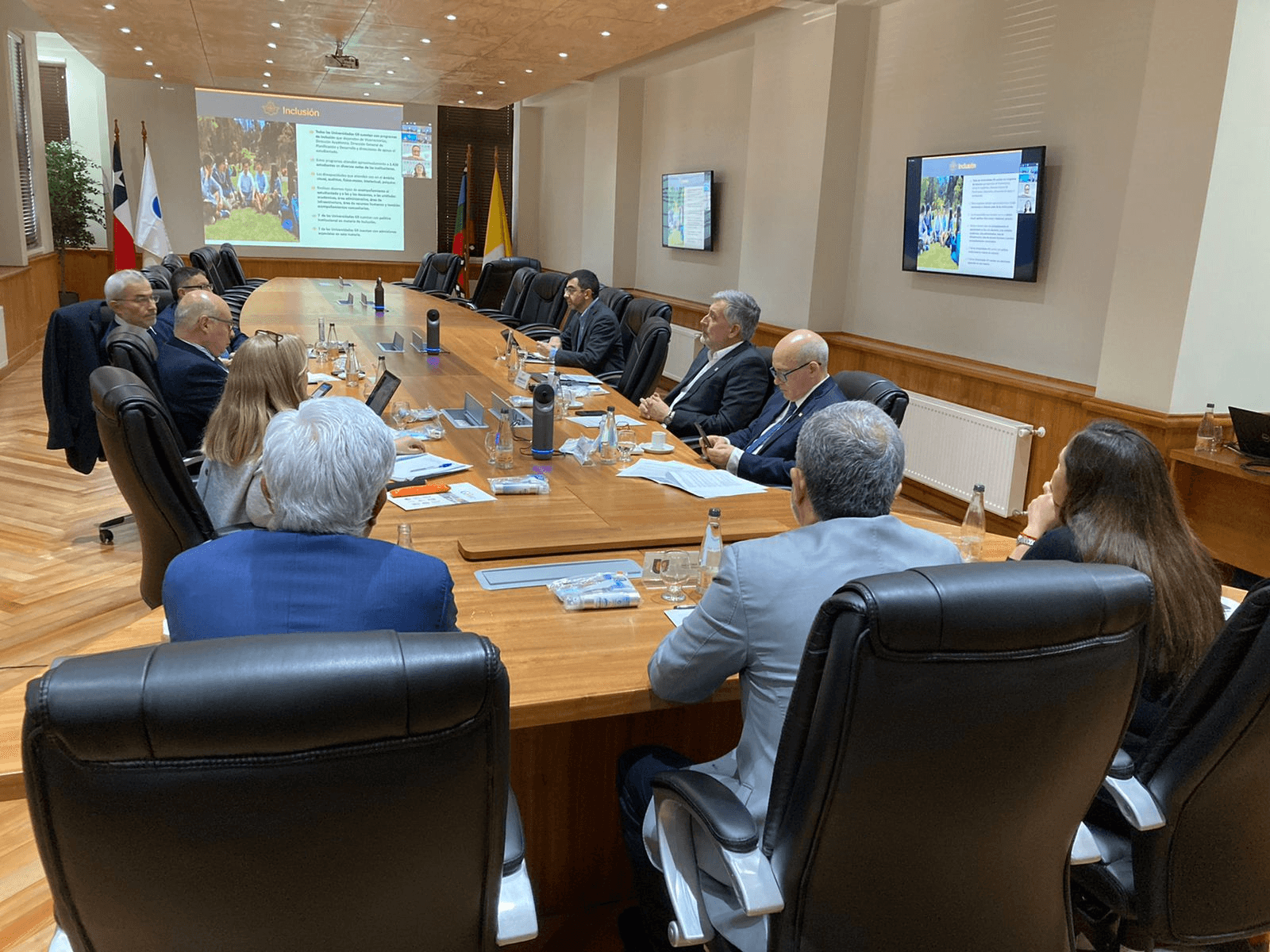 En el marco de la reunión mensual del Consejo de Rectores (CRUCh), y de las distintas agrupaciones que lo conforman, que se realizaron en esta oportunidad en la Universidad Católica de Temuco (UCT), los rectores de las Universidades Públicas agrupadas en la Red G9 recibieron en directorio a la Subsecretaria de Educación Superior Verónica Figueroa Huencho y el Jefe de División de Educación Universitaria Thomas Griggs Latuz con el objetivo de conversar respecto al quehacer de las universidades de la agrupación, en los diversos territorios en los que están presentes, con énfasis en los ejes estratégicos de inclusión, interculturalidad y equidad de género.