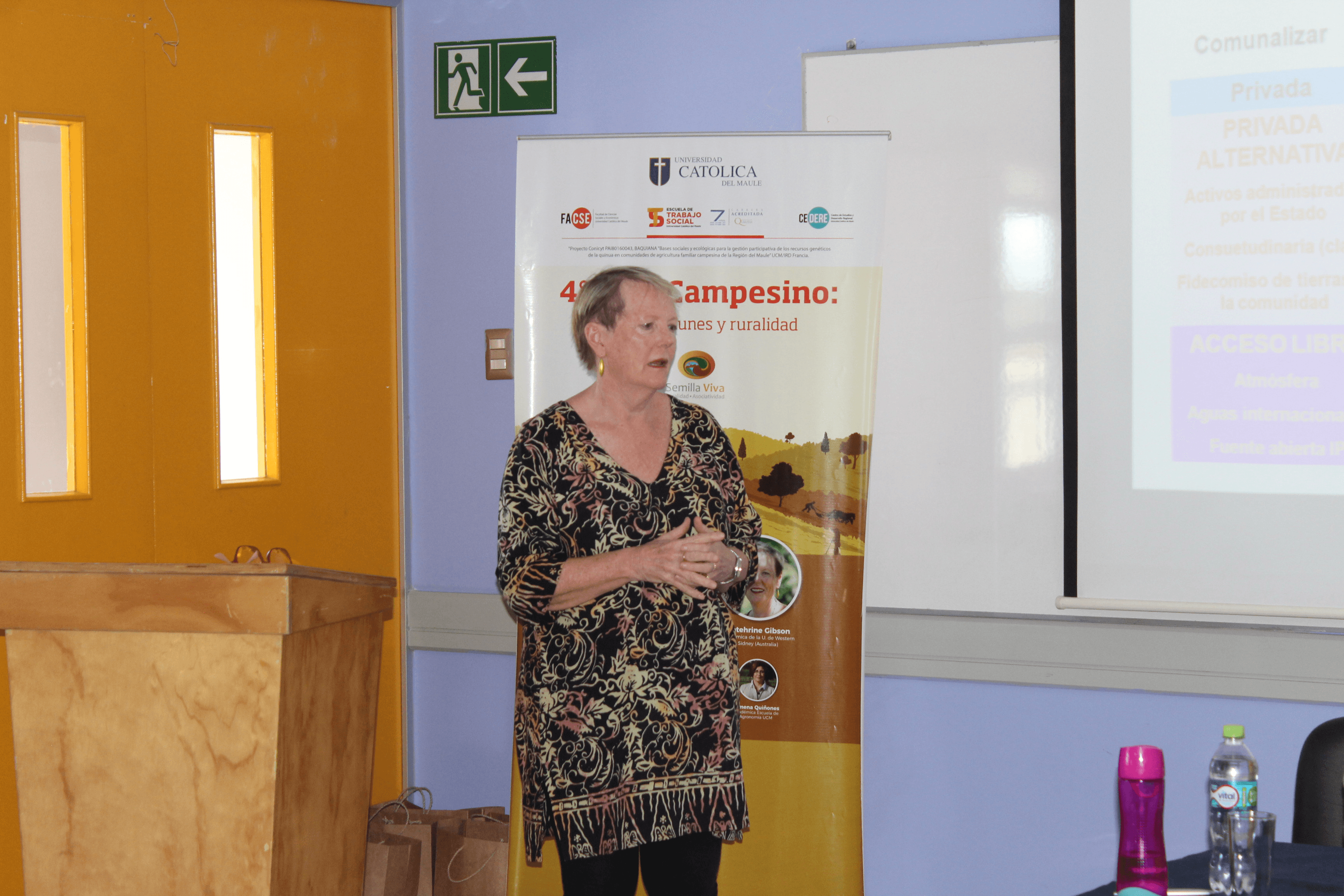 La cita contó con las exposiciones de la Dra. Katherine Gibson, académica australiana de la Universidad de Westwern Sidney y referente internacional en los temas de la economía comunitaria, y Thierry Winkel, investigador del Institut de Recherche pour le Développement de Francia, que durante este semestre se encuentra en Curicó en el marco del Proyecto Conicyt “BAQUIANA - Bases sociales y ecológicas para la gestión participativa de los recursos genéticos de la quinua en comunidades de agricultura familiar campesina de la Región del Maule”, que se desarrolla en conjunto a la Escuela de Trabajo Social de la UCM.