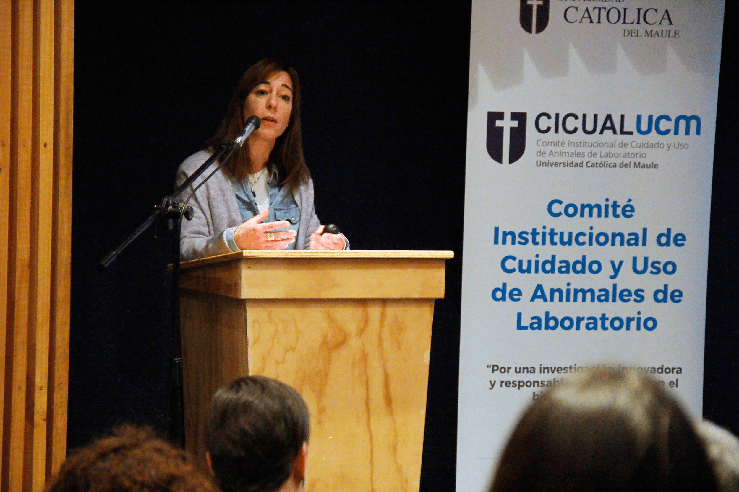 La Dra. Ingrid Carvacho explicó el trabajo que está desarrollando el Comité Institucional de Uso y Cuidado de Animales de Laboratorio de la UCM (CICUAL).