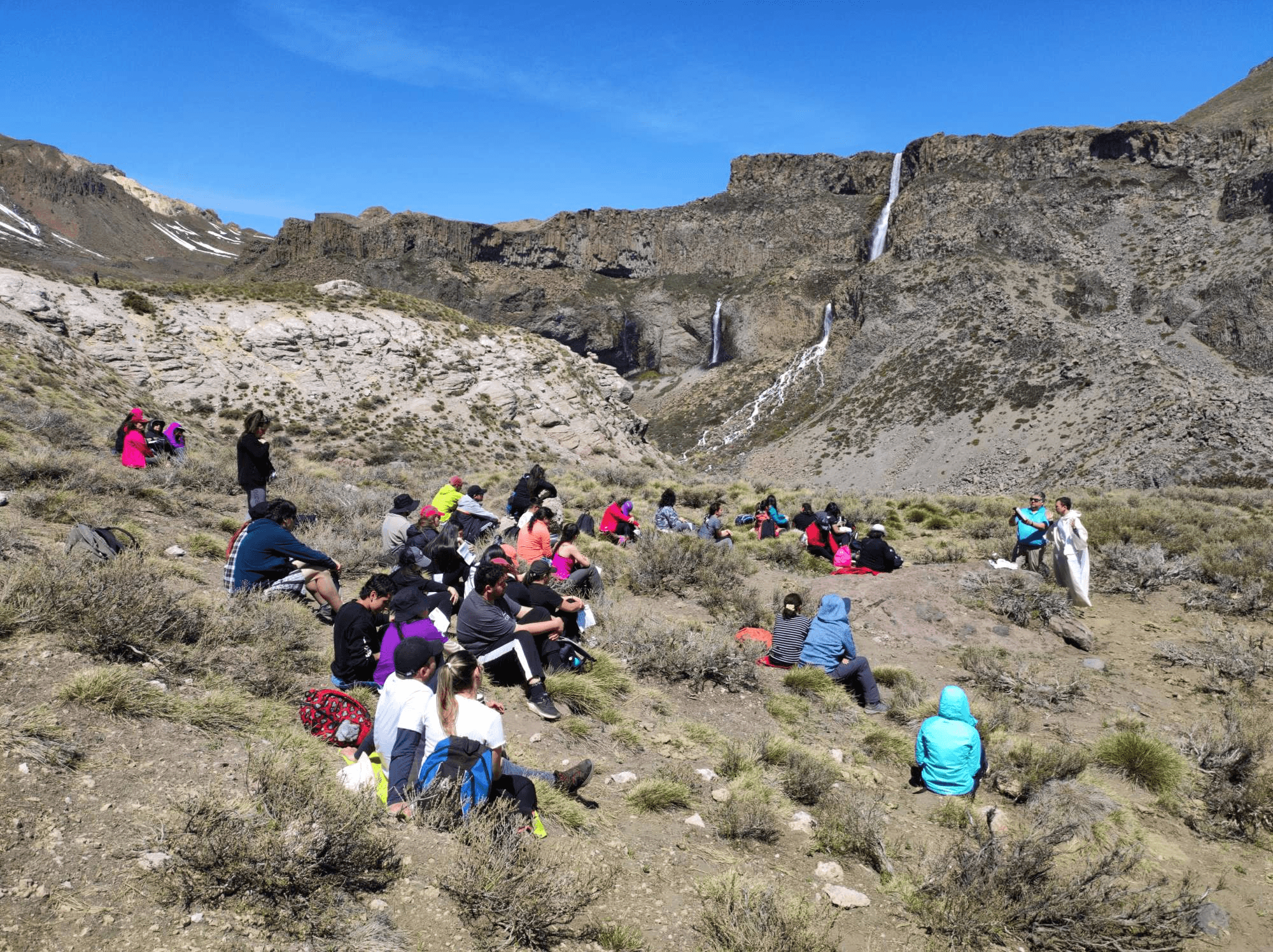 Los asistentes del Trekking debieron superar un terreno que a ratos se complicaba por el exceso de rocas, la sensación de vértigo producto de recorrer senderos en altura que se verían decorados por la aparición de pequeños bloques de nieves que se hacían notar en medio del camino.