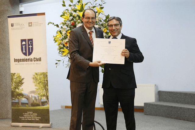 Como es costumbre, a la ceremonia de titulación llegó también el presidente del Colegio de Ingenieros de Chile A.G. Zonal Maule, Arturo Briso, quien entregó un reconocimiento al estudiante Luis Hernández, por alcanzar el promedio de notas más alto de su promoción.