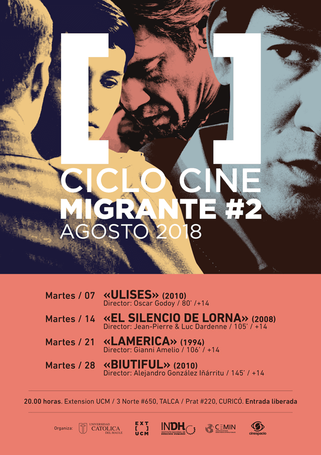 Durante todos los martes de agosto, a las 19:00 horas el Centro de Extensión de la Universidad Católica del Maule (EXT UCM) en sus sedes de Talca y Curicó, ofrecerá a la comunidad talquina -de forma gratuita- la “Segunda Versión del Ciclo de Cine Migrante”, iniciativa organizada de manera conjunta con el Centro de Estudios Migratorios e Interculturales de la UCM (CEMIN) y Cinespacio.